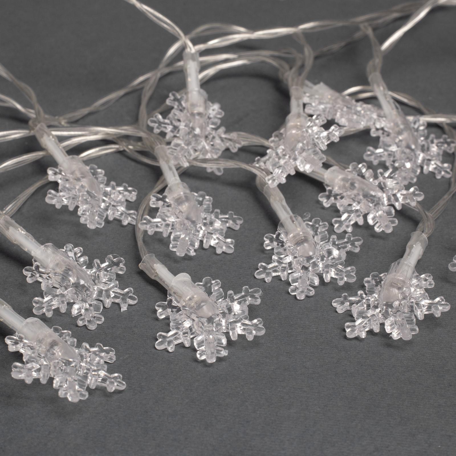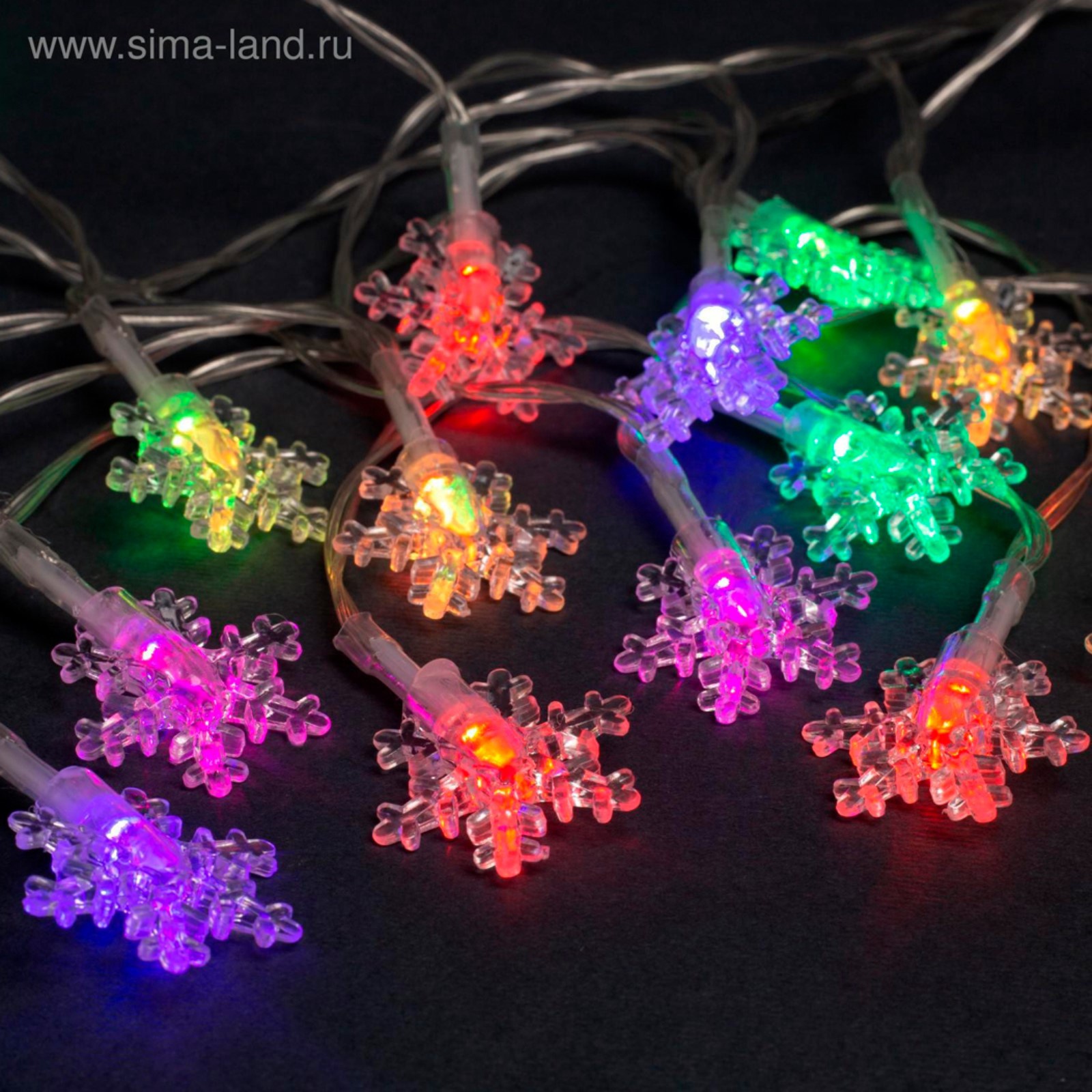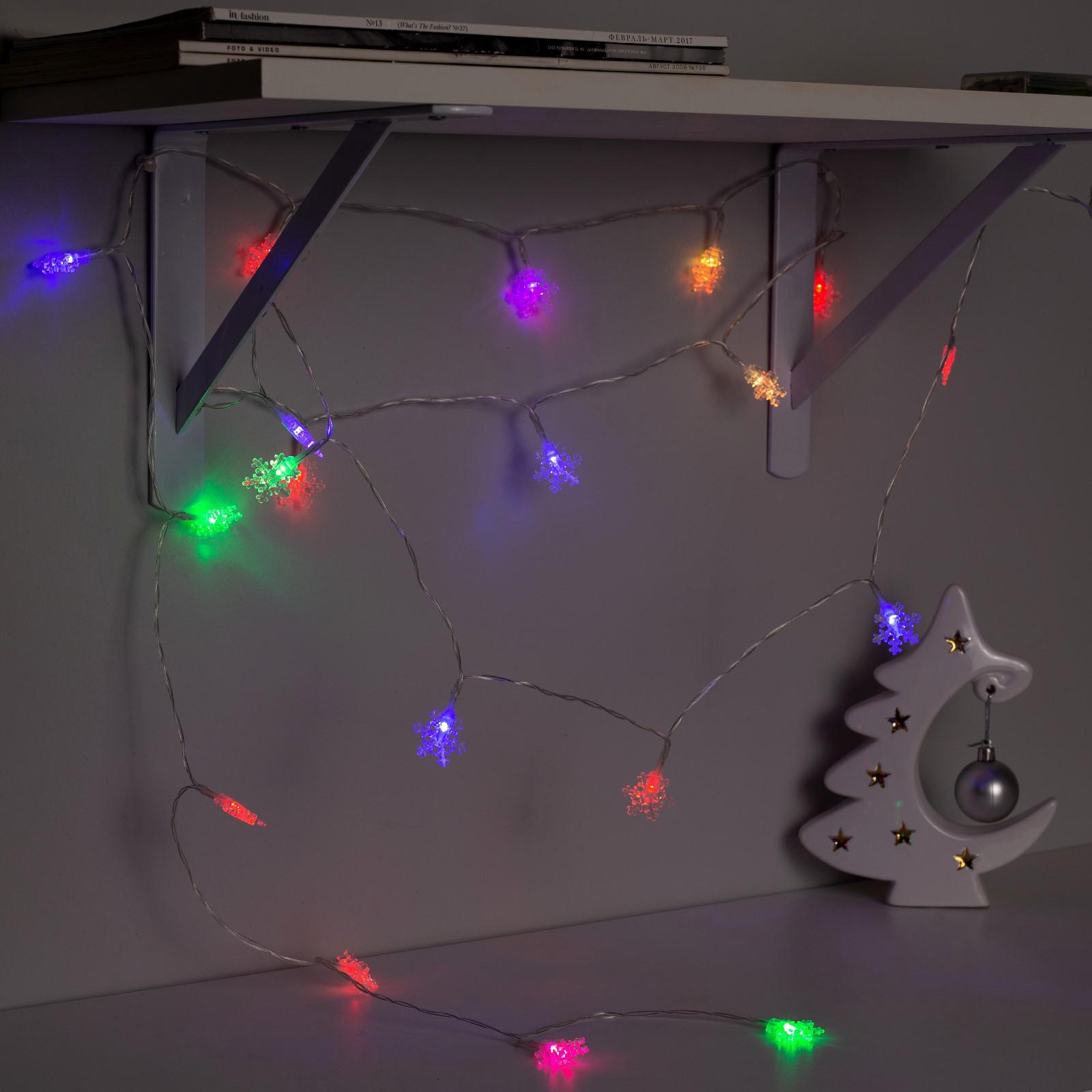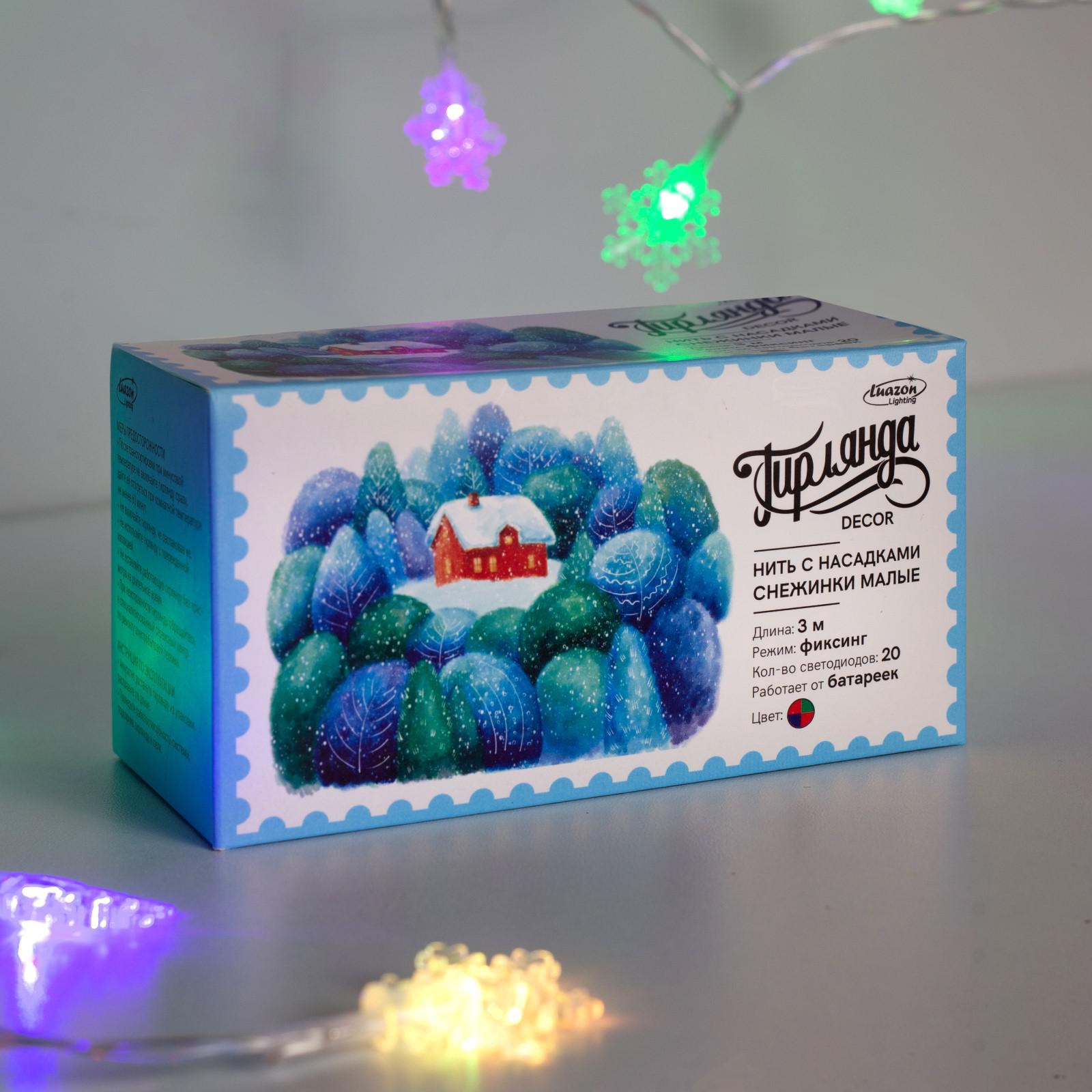 Гирлянда «нить» 3 м с насадками «снежинки малые», Ip20, прозрачная нить, 20 Led, батарейки Aaх3 (нет в комплекте), свечение муль