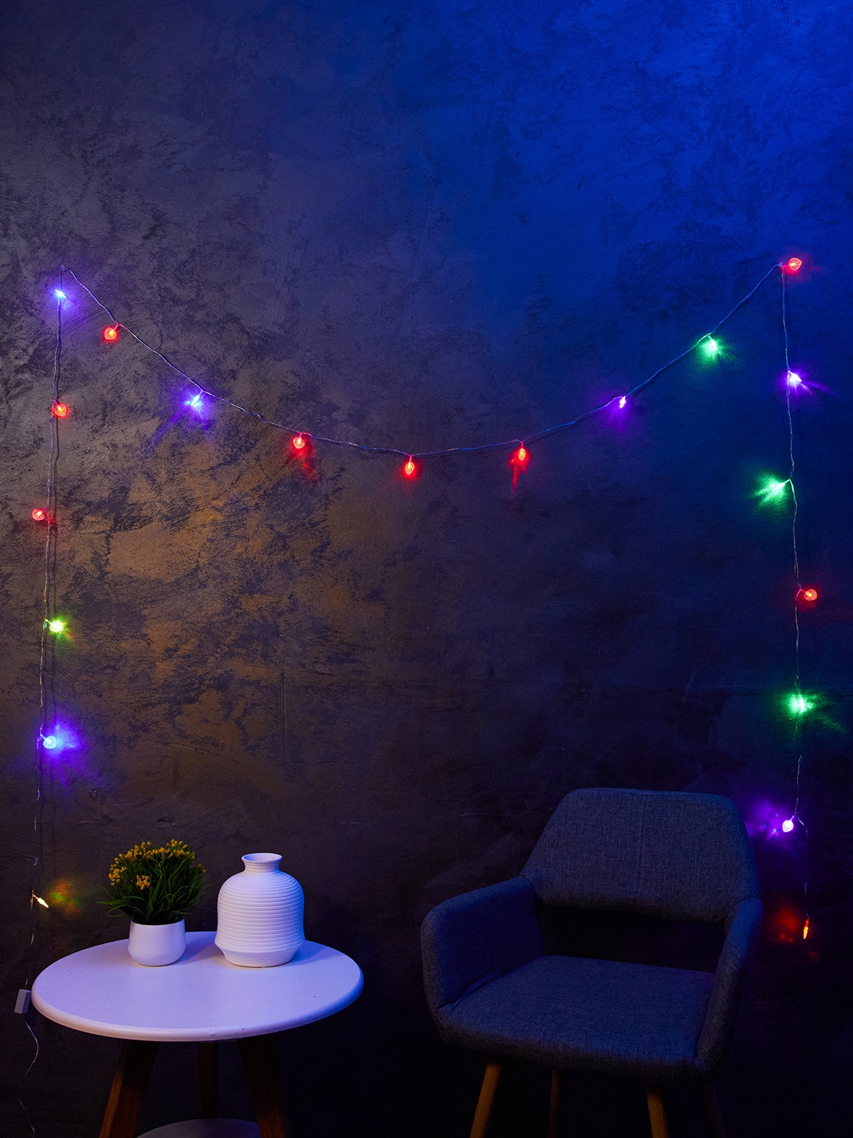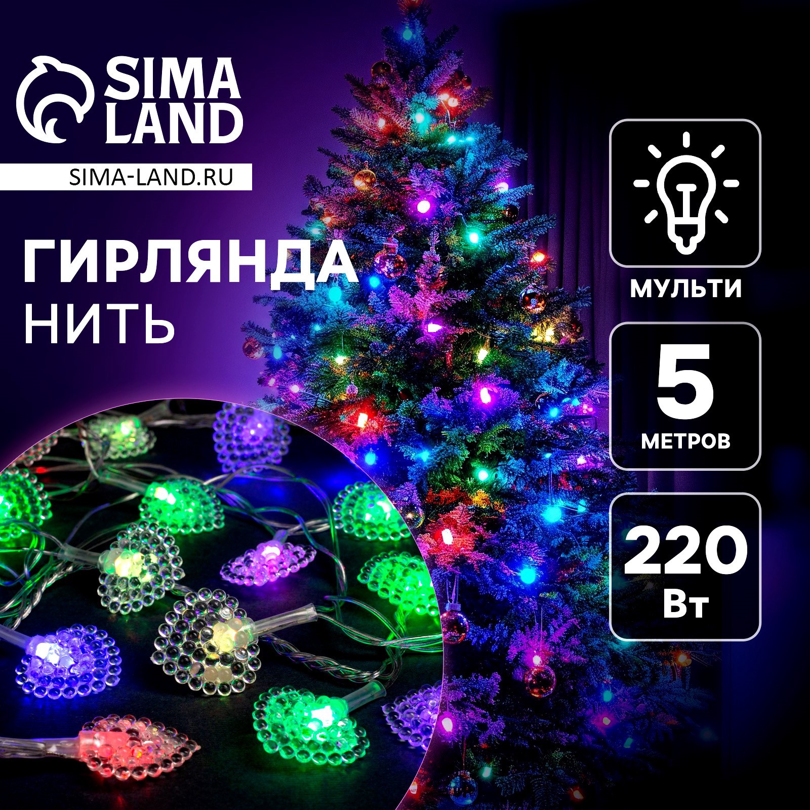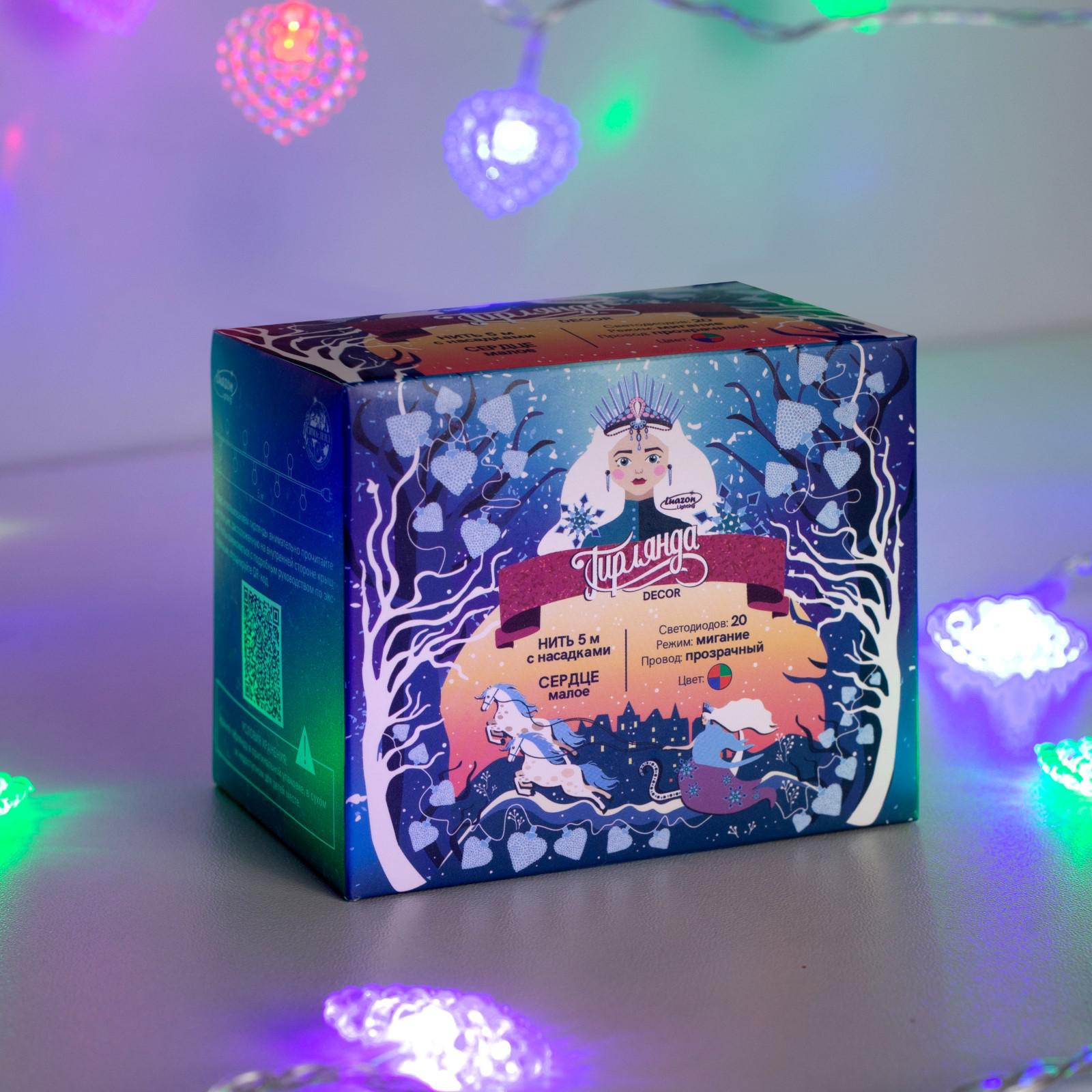 Гирлянда «нить» 5 м с насадками «сердце малое», Ip20, прозрачная нить, 20 Led, свечение мульти (rg/rb), мигание, 220 в