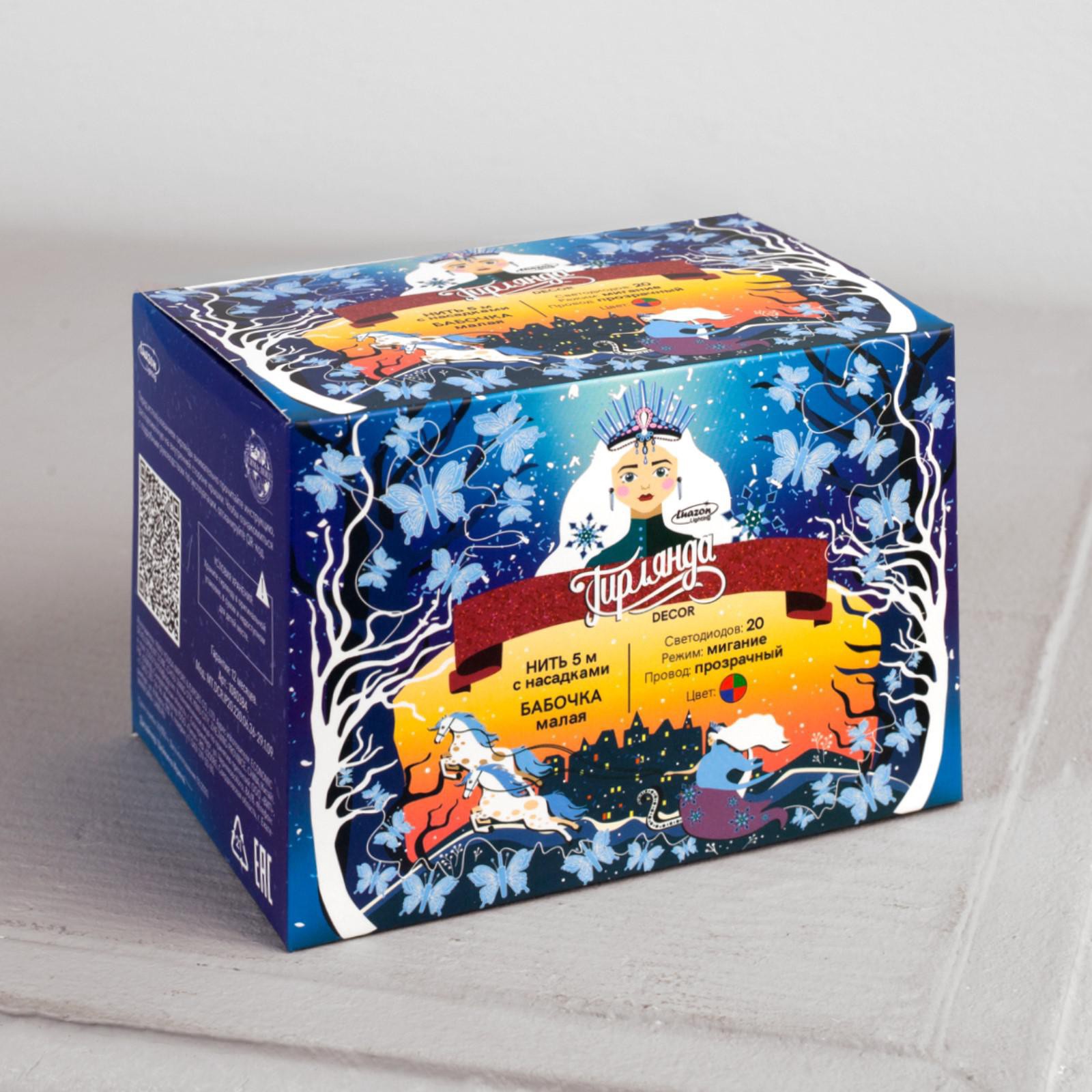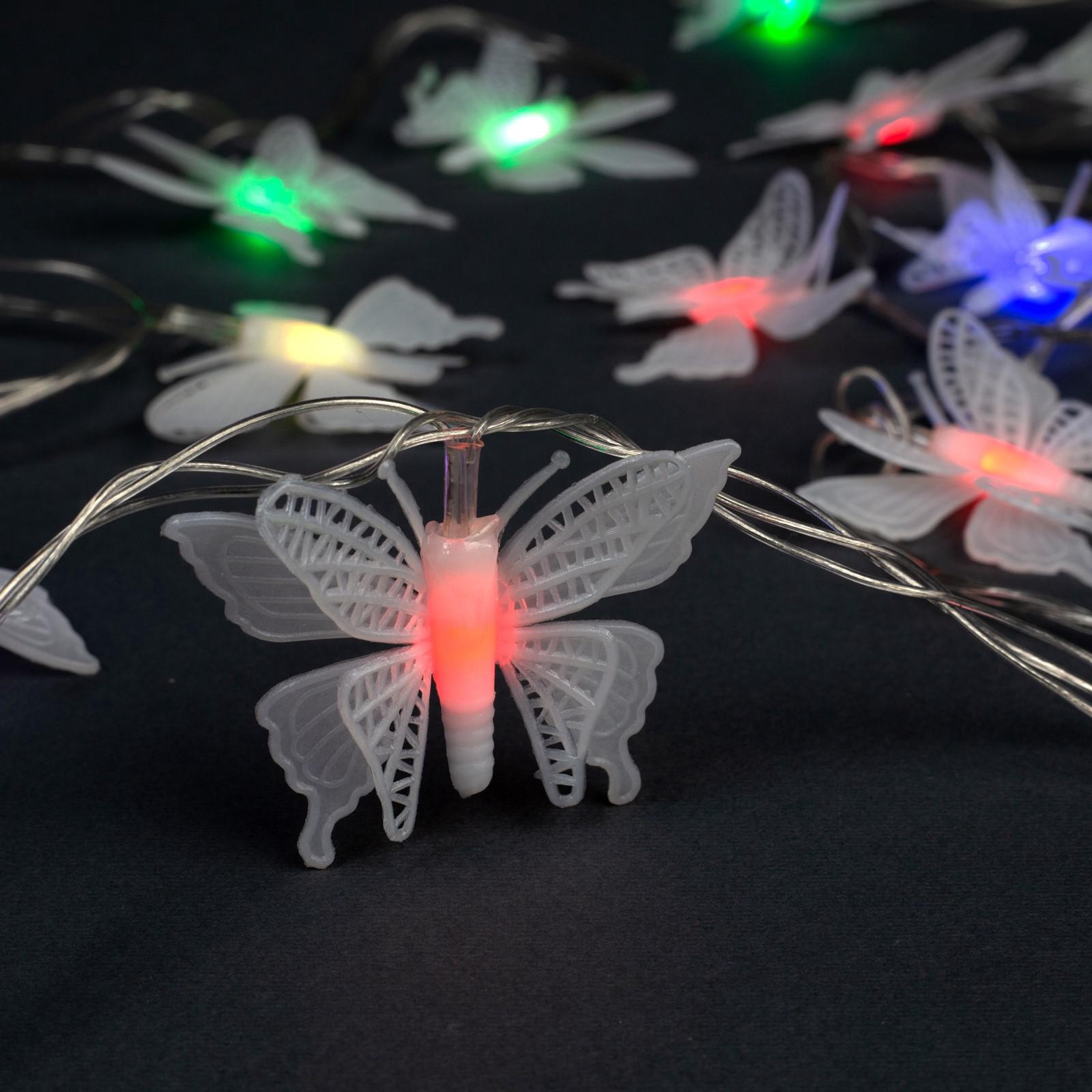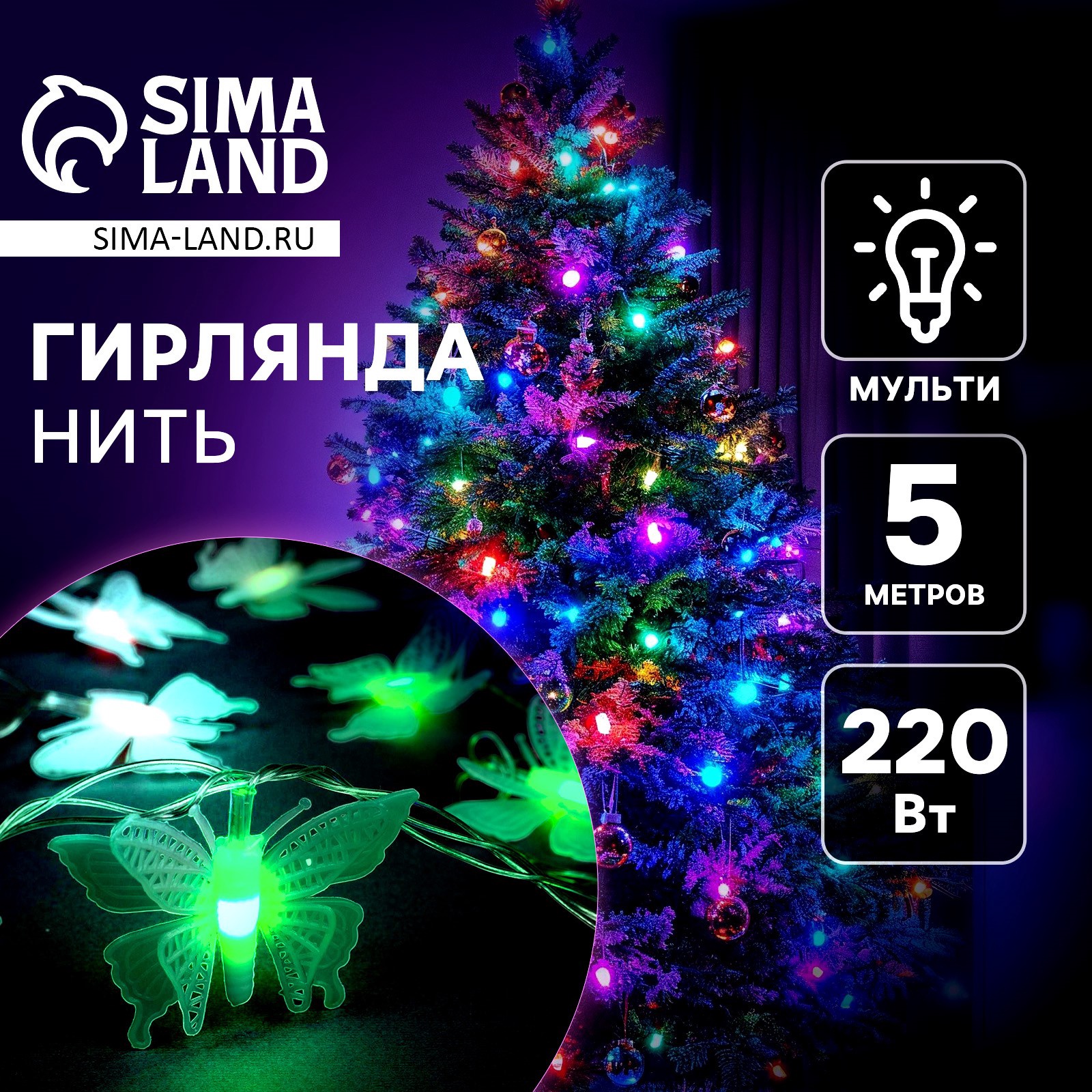 Гирлянда «нить» 5 м с насадками «бабочки малые», Ip20, прозрачная нить, 20 Led, свечение мульти (rg/rb), мигание, 220 в