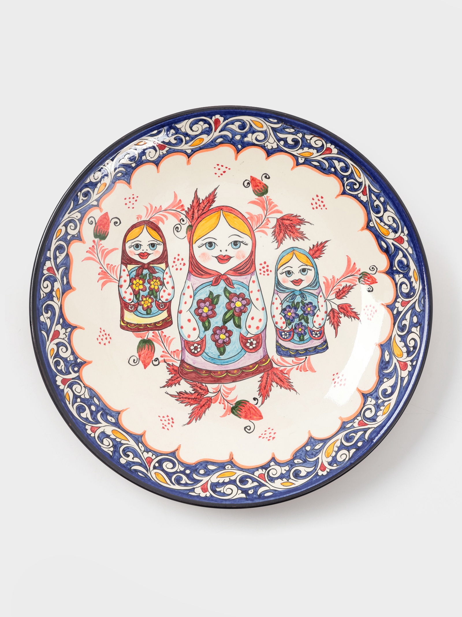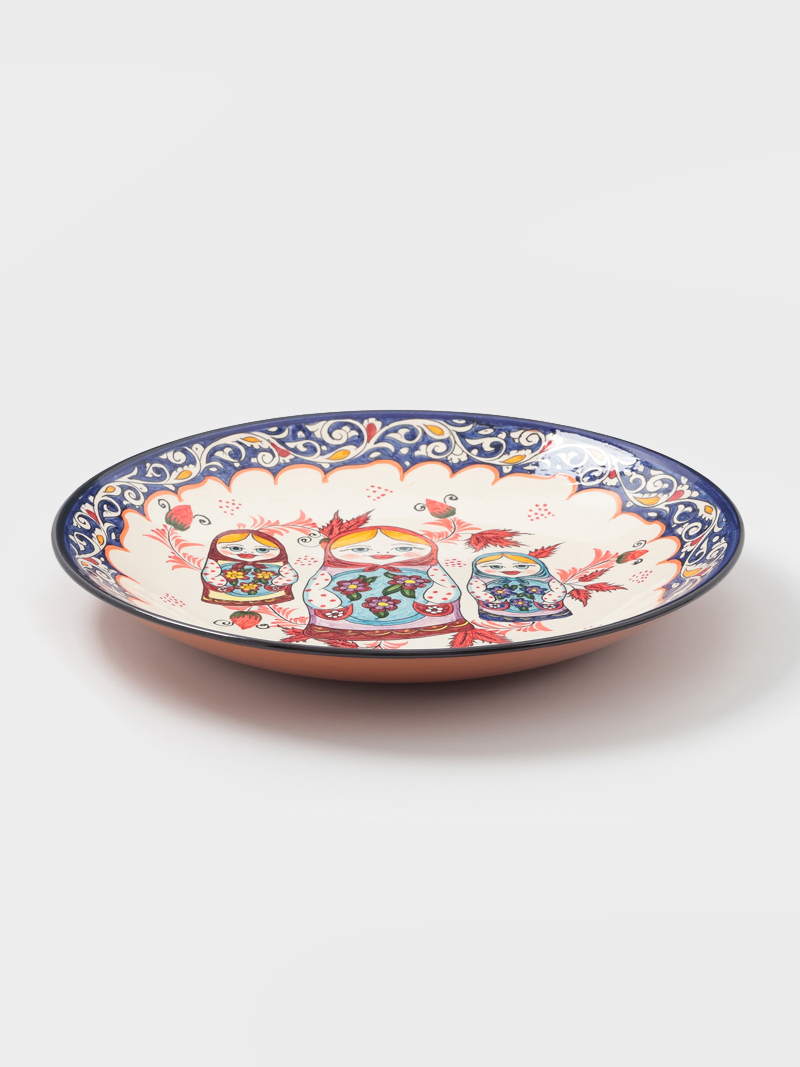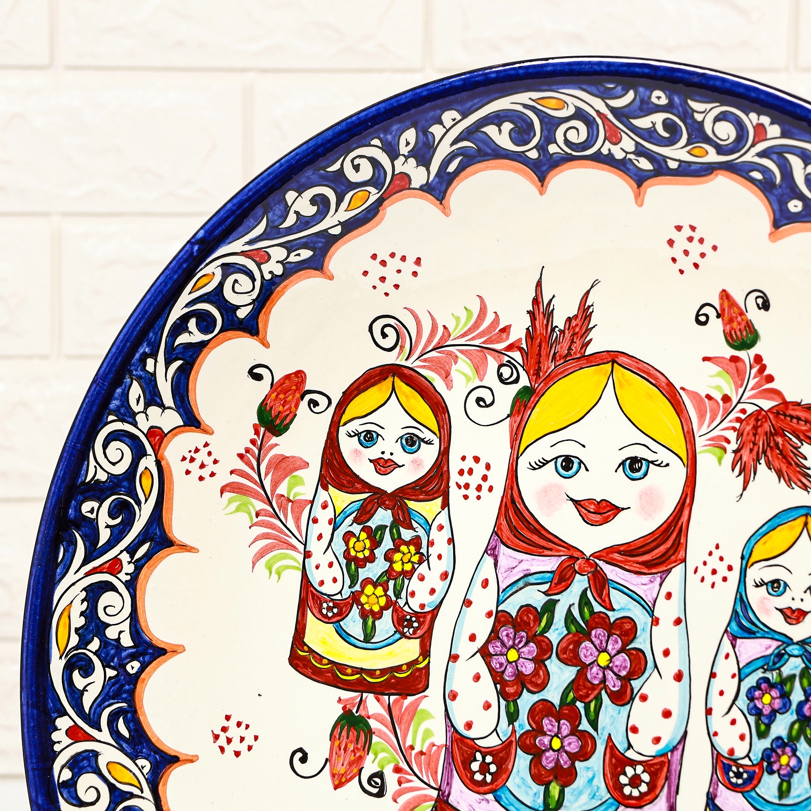 Ляган узбекский риштанская керамика «матрёшки», D=42 см, синий