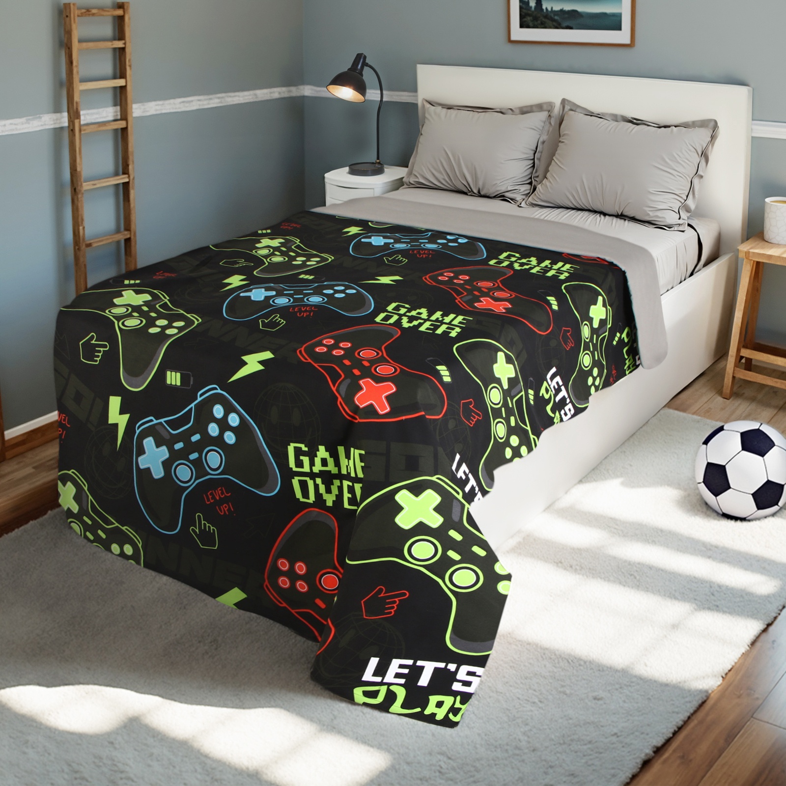 Покрывало 1.5-спальное «этель» game over, 145 210 см, хлопок 100%. Цвет:Чёрный|Ткань:Рогожка|Плотность, г/м :220|Размер, см:145 х 210|Длина, см:210|Ширина, см:145|Размер:1.5-спальное|Тематика:Игры|Вид упаковки:Пакет с крючком|Декоративные элементы:Без элементов|Рекомендации по уходу:Деликатная стирка при 30 °С|Рекомендации по уходу:Не отбеливать|Рекомендации по уходу:Бережный режим глажки|Рекомендации по уходу:Деликатный режим отжима|Рекомендации по уходу:Стирка при 30 °С|Состав ткани:Хлопок|Страна:Россия  развернуть описание ▼