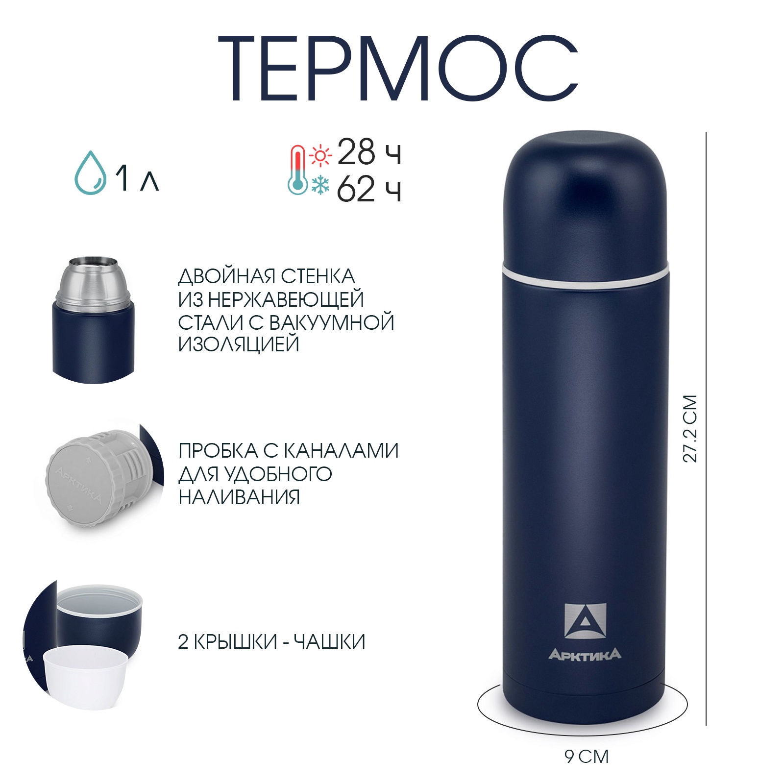 Термос "арктика", 105, 1 л, с дополнительной чашкой, сохраняет тепло 28 ч, синий