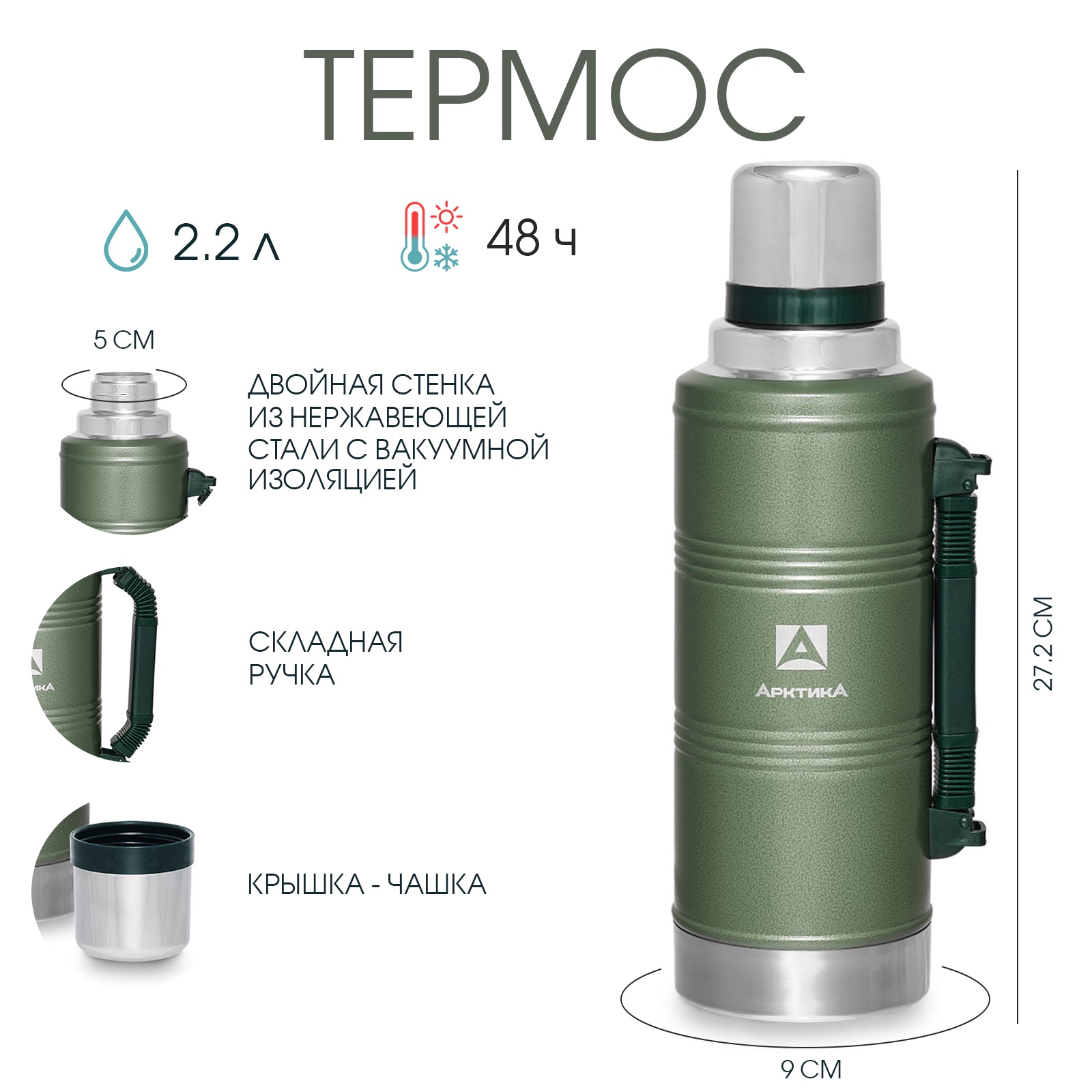 Термос "арктика", 106, 2.2 л, D-5 см, сохраняет тепло 48 ч, зелёный