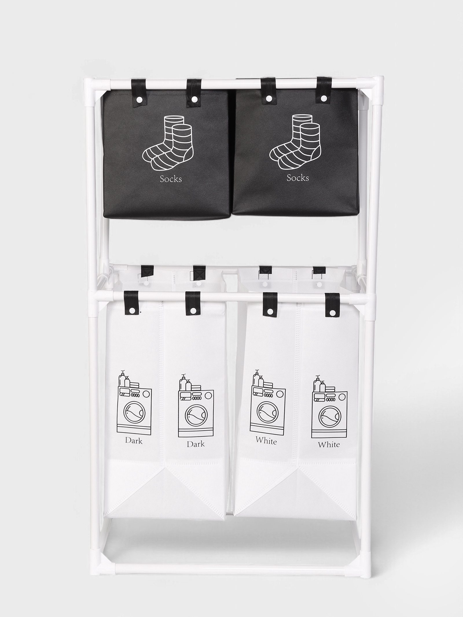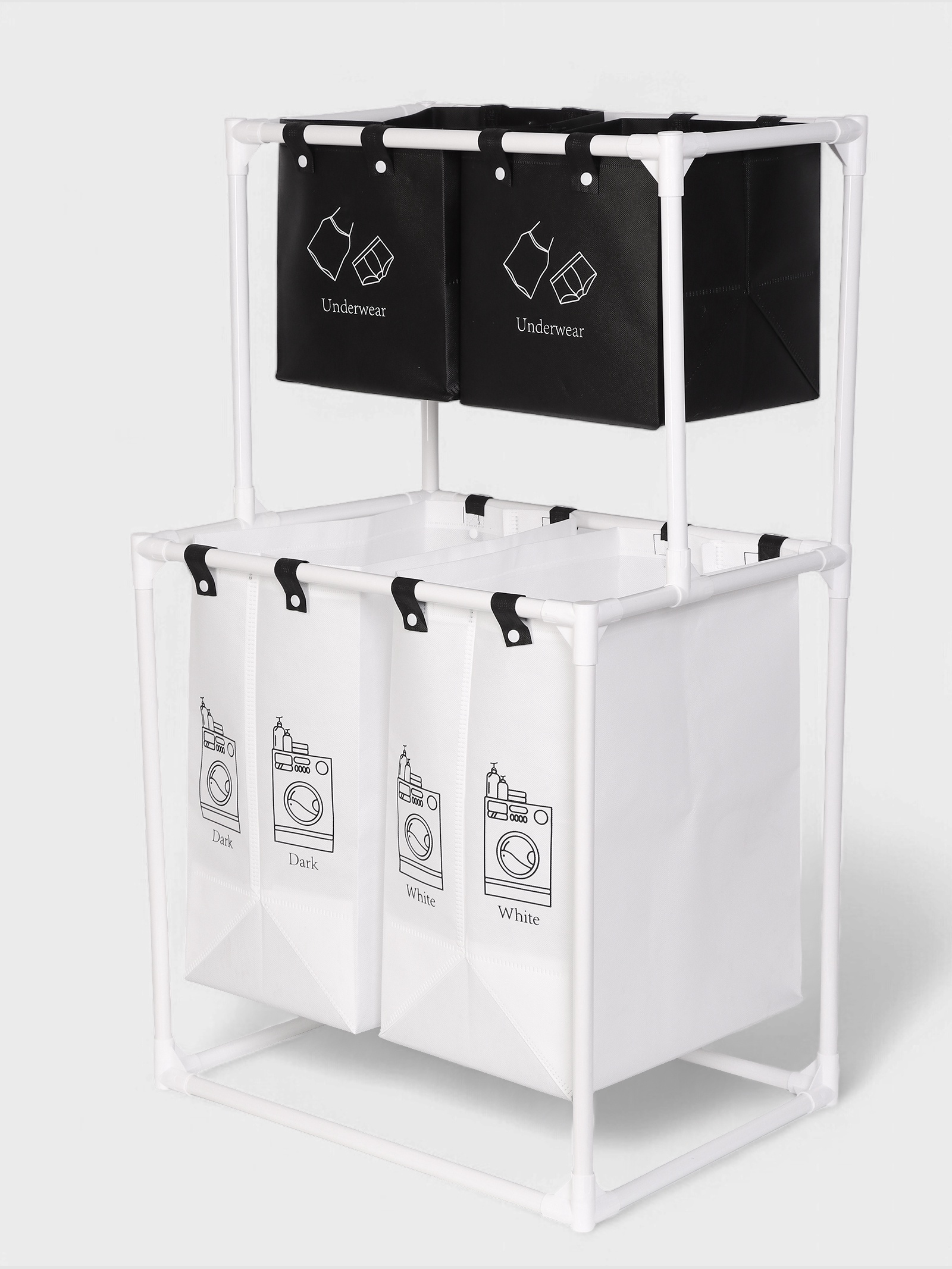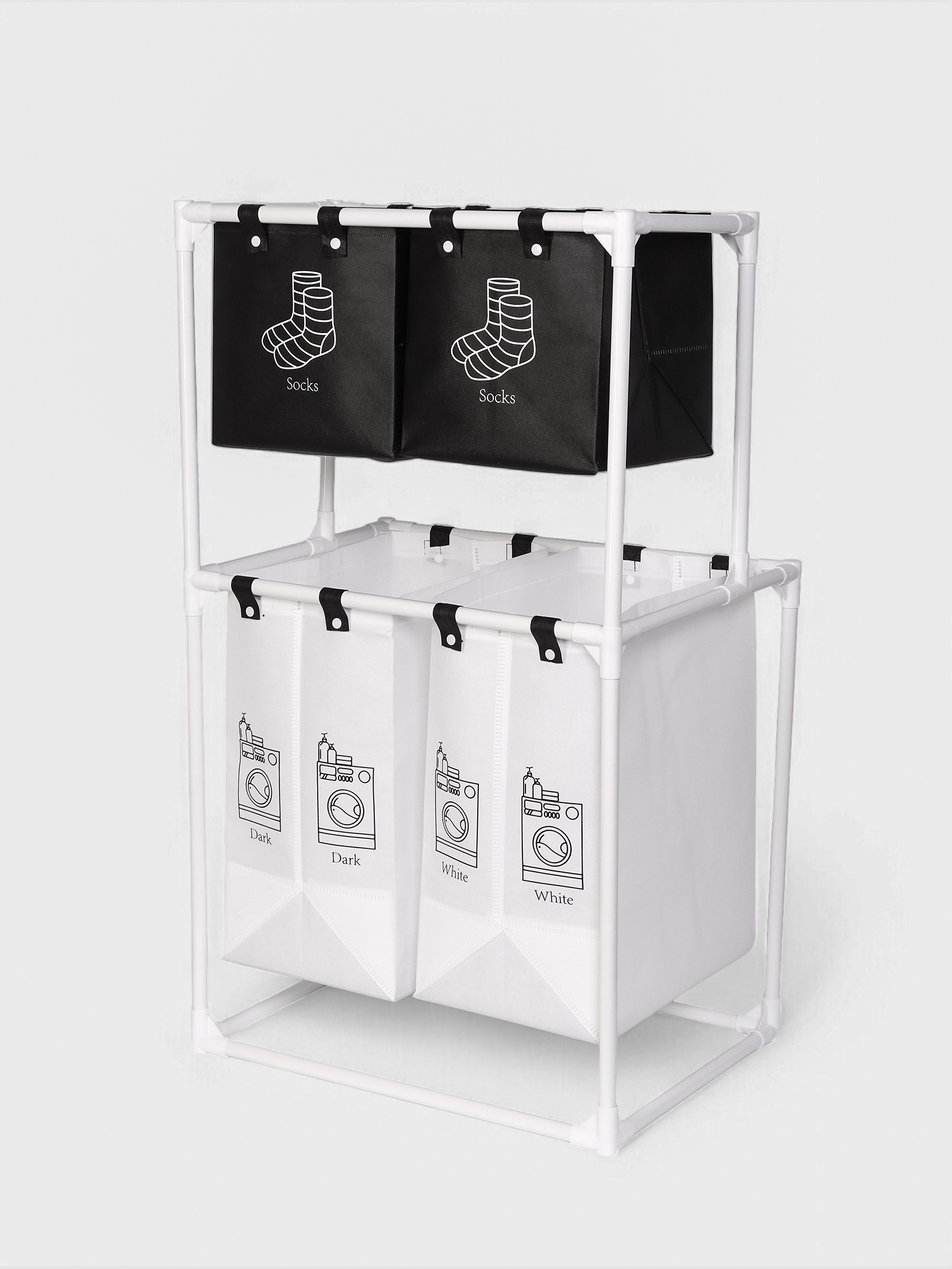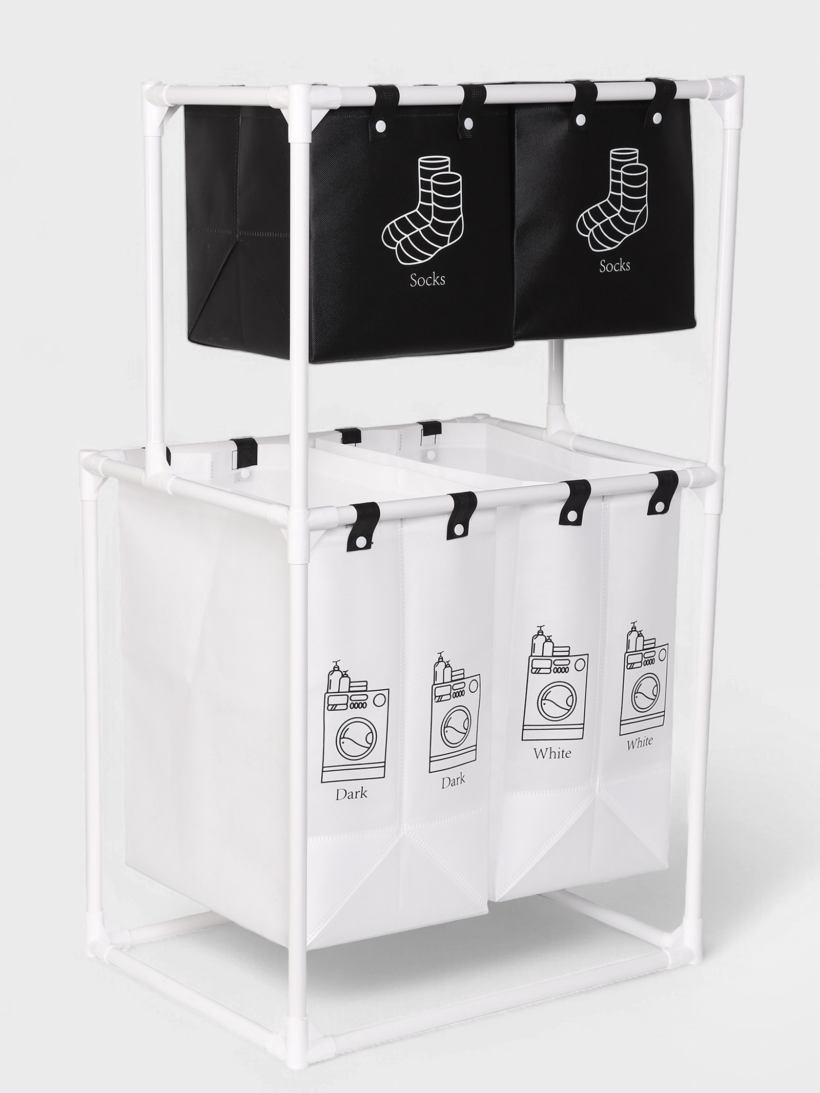 Корзина для белья складная доляна, 56 39 95 см, чёрная, белая. Цвет:Чёрный|Цвет:Белый|Ширина, см:56|Высота, см:95|Рисунок:Да|Крышка:Нет|Материал:Полиэстер|Страна:Китай
