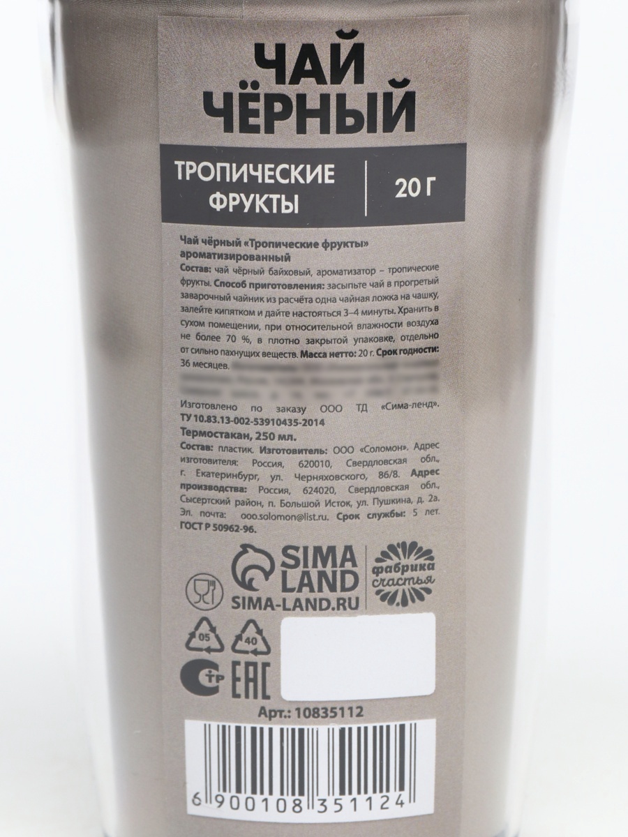 Чай подарочный в термостакане «мой кот мем», вкус: тропические фрукты, 20 г