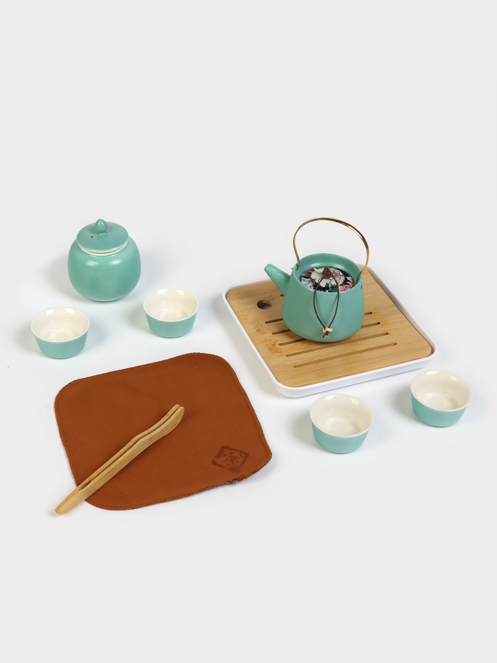 Набор для чайной церемонии «огаки», 9 предметов, на 4 персоны, чашка 40 мл, чайник 200 мл, керамика, бирюзовый