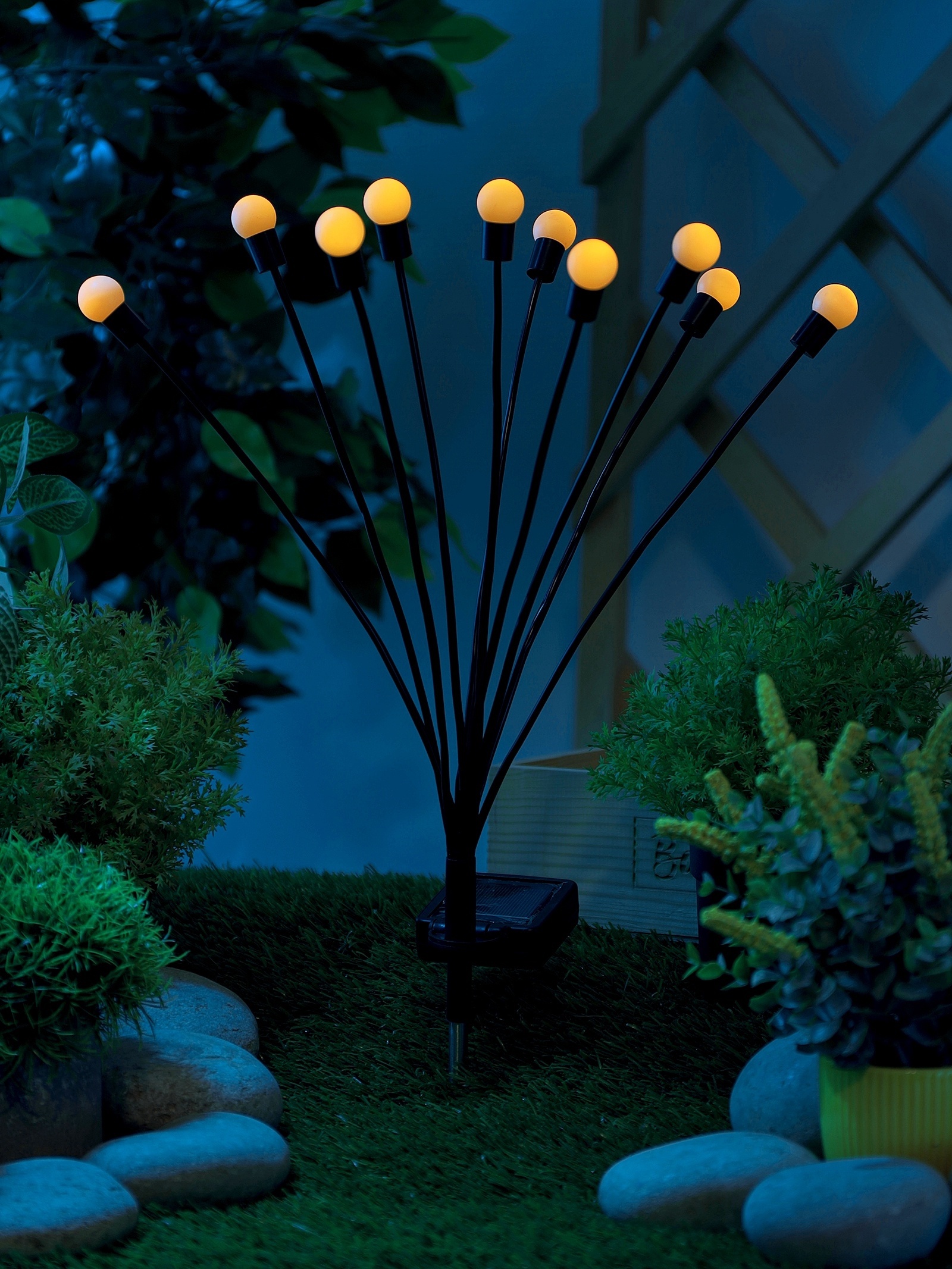 Садовый светильник «шарики», уличный, на солнечной батарее, 68 см, 10 led, свечение тёплое белое. Солнечный светильник в виде изящных шаров — простое и стильное решение для сада, которое заряжается от солнца и создаёт уютное вечернее освещение. Тёплый свет мягко выделяет дорожки, беседки или клумбы, превращая обычный участок в место для отдыха и романтических вечеров. Почему этот светильник — удачный выбор Работает без проводов и розеток — встроенная солнечная панель накапливает энергию днём, а с наступлением темноты свет включается автоматически.Мягкое свечение — 10 LED-ламп с тёплым белым светом не слепят, а создают расслабляющую атмосферу.Лаконичный дизайн — тонкая ножка и чёрный корпус светильника, а так же лампочки в виде шариков выглядят современно и подходят для любого стиля ландшафта.Как использовать с максимальной пользой Установите светильник там, где он будет получать достаточно солнца: вдоль садовых дорожек, рядом с зоной отдыха или у входа. Он не только украсит участок, но и сделает передвижение в темноте безопасным. А главное — не потребует ни копейки на электричество. Цвет свечения:Тёплый белый|Количество ламп:10|Цоколь:Встроенные LED|Высота, см:68|Гарантийный срок, мес.:6|Степень защиты:IP44|Материал основания:Пластик|Цвет корпуса:Чёрный|Температурный режим:от -10 до +35 °С|Страна:Китай  развернуть описание ▼