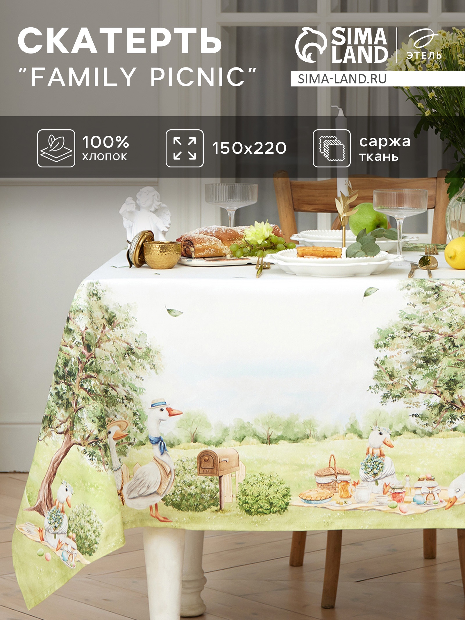 Скатерть этель Family Picnic, 150 220 см +/-3 см с вгмо, 100% хлопок, саржа 190 г/м