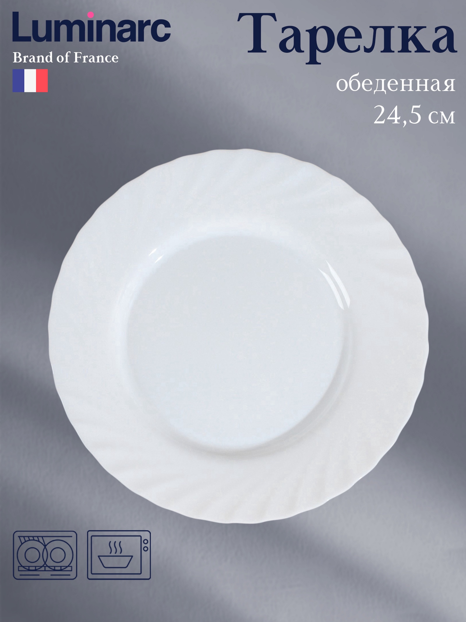Тарелка Luminarc Trianon, D=24.5 см, обеденная, стеклокерамика, белая