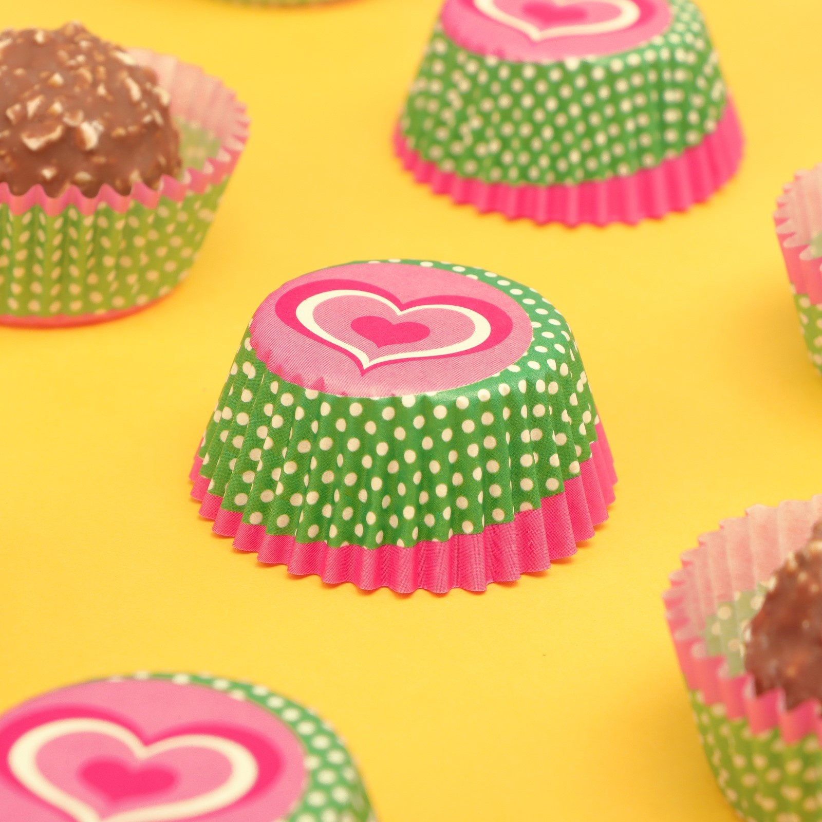 Формы для выпечки кексов бумажные Upak Land «сердце», набор 300 шт., 3.5 2 см, одноразовые, зелёные
