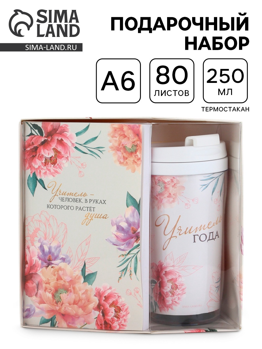 Набор: ежедневник а6, 80 листов и термостакан 250 мл «учитель года»