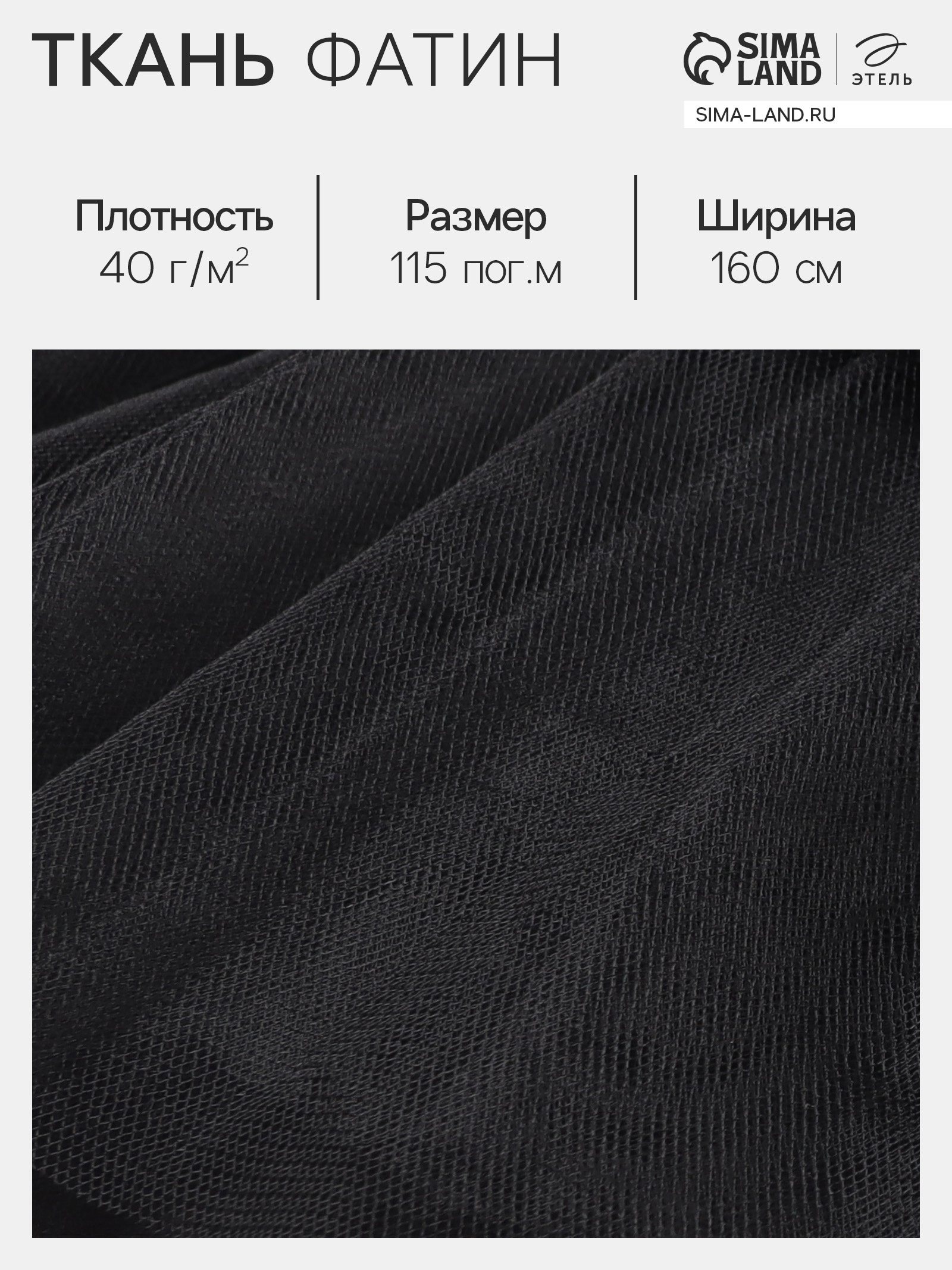 Фатин для рукоделия и шитья, 40 г/м , ширина 160 см, чёрный