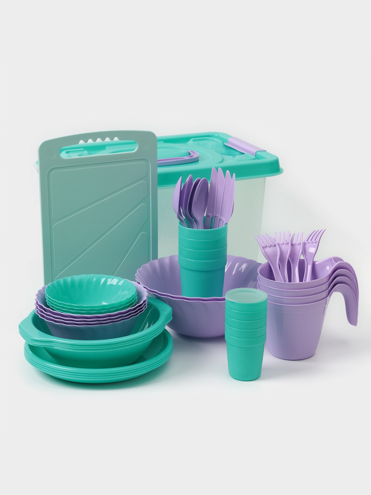 Набор посуды для пикника «весёлая компания– 2», на 4 персоны, 41 предмет, пластик, микс. Набор для пикника “Веселая компания - 2”: Ваш идеальный компаньон на природе! Этот яркий и практичный набор посуды на 4 персоны станет вашим незаменимым помощником для пикников, кемпинга и выездов на природу. 41 предмет, изготовленный из прочного пластика, включает в себя все необходимое для комфортного приема пищи вдали от дома. Разноцветный микс добавит позитива и хорошего настроения вашей трапезе на свежем воздухе. Полная комплектация: В наборе есть все необходимое для четырех человек: тарелки, стаканы, вилки, ложки и ножи. Удобство хранения и переноски: Все предметы аккуратно упакованы в прочный пластиковый кейс, что делает транспортировку набора удобной и безопасной. Практичный материал: Посуда изготовлена из легкого и прочного пластика, который легко моется и устойчив к повреждениям. Легкость и компактность: Набор не занимает много места и весит немного, поэтому его легко брать с собой в любое путешествие. Яркий дизайн: Разноцветный микс сделает вашу трапезу на свежем воздухе более веселой и запоминающейся. Многоразовое использование: Набор предназначен для многократного использования, что делает его экологичным и экономичным решением. Набор “Веселая компания - 2” – это отличный выбор для тех, кто ценит комфорт, практичность и яркие эмоции на природе! Наслаждайтесь отдыхом в компании друзей или семьи с удобной и красивой посудой. Цвет: МИКС parts count: 0 Количество персон: 4 В наборе, шт.: 41 Вид упаковки: Кейс пластиковый Материал: Пластик Назначение: Для приёма пищи Комплектация: Столовые приборы Комплектация: Столовая посуда Комплектация: Посуда для напитков  развернуть описание ▼