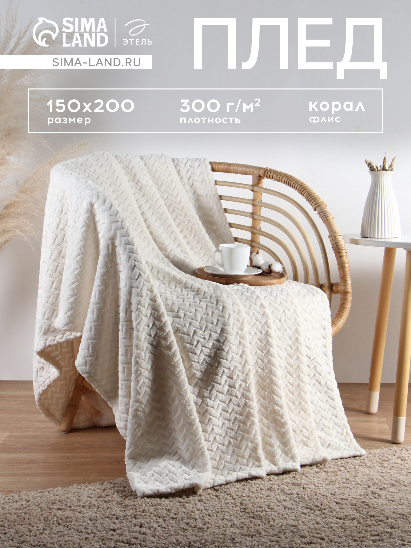 Плед «этель» Zig-zag, 150 200 см, корал-флис, молочный