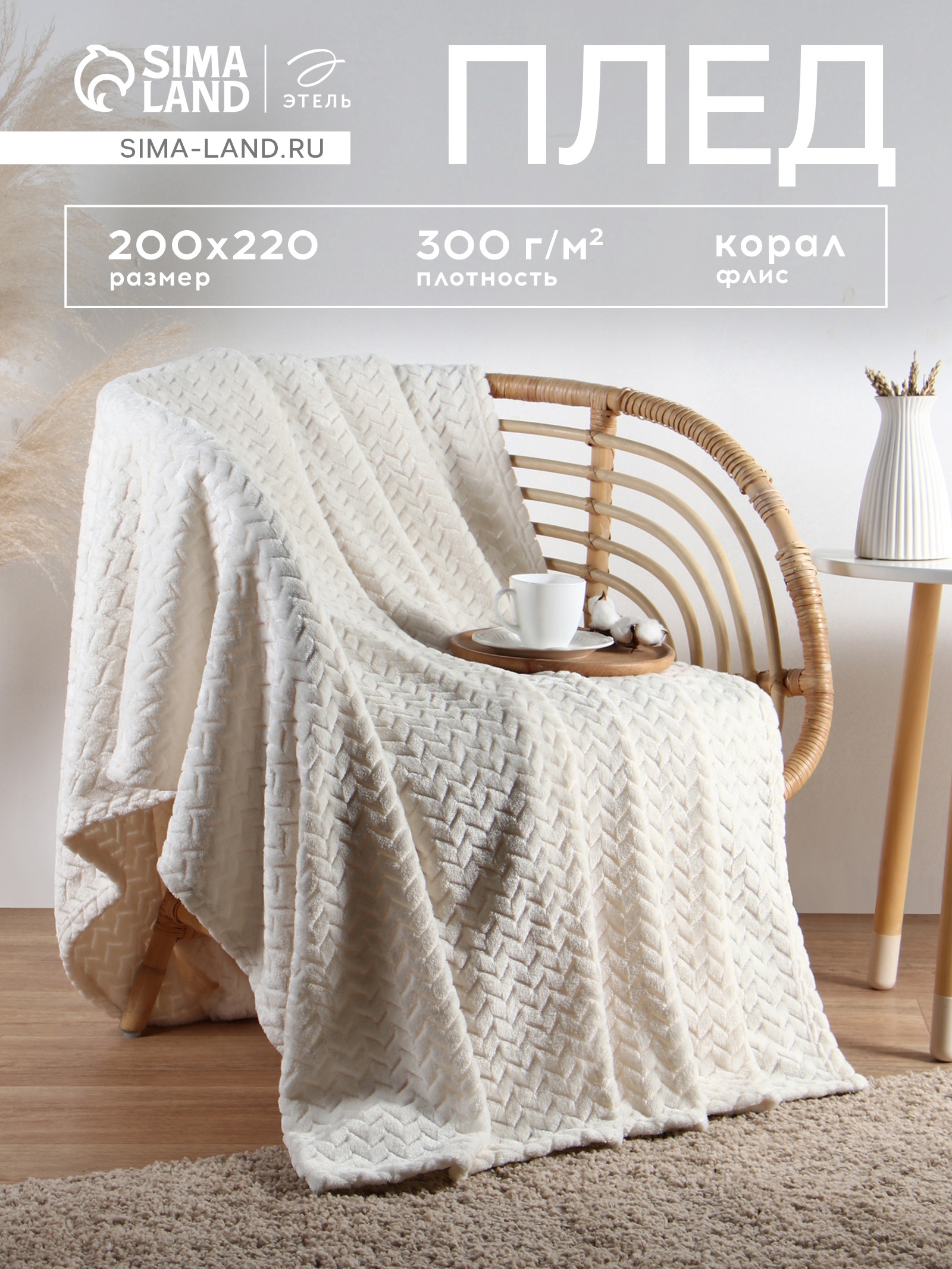 Плед этель Zig-zag, 200 220 см,100% п/э, корал-флис, молочный