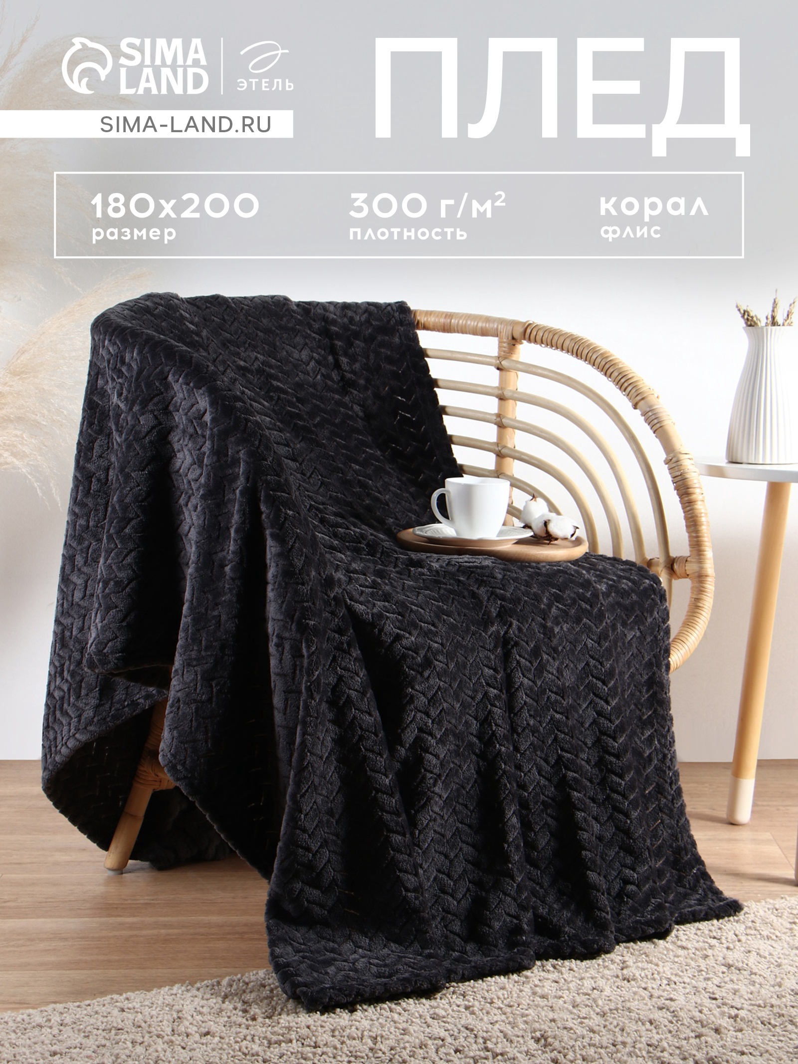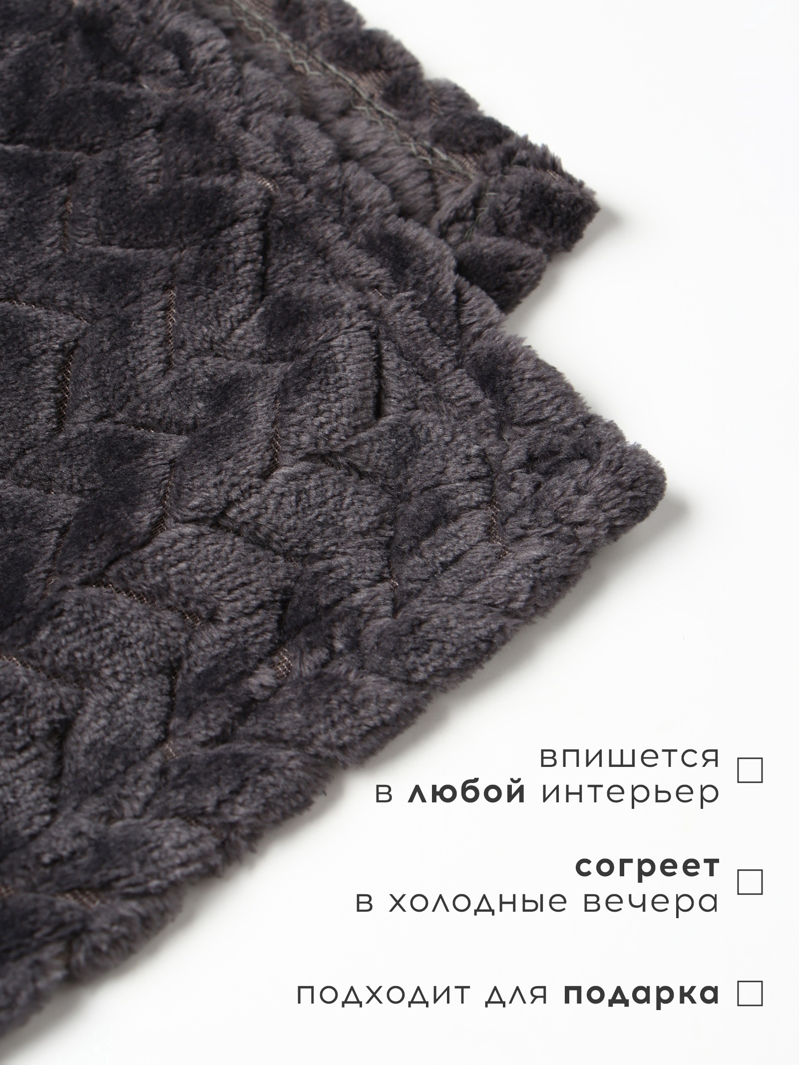 Плед этель Zig-zag, 180 200 см,100% п/э, корал-флис, тёмно-серый