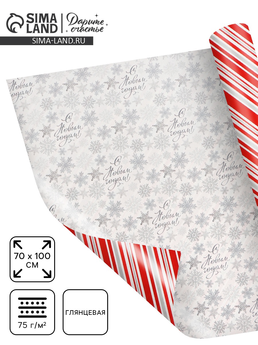 Бумага упаковочная глянцевая двухсторонняя «с новым годом!», 70 х 100 см. Размер, м:0.7 х 1|Цвет:Красный|Цвет:Серый|Плотность, г/м :75|Тематика:Новогодняя|Символ года:Нет|Тематика праздника:Новый год|Вид:В листах|Тип листа:Двусторонний|Страна:Россия  развернуть описание ▼