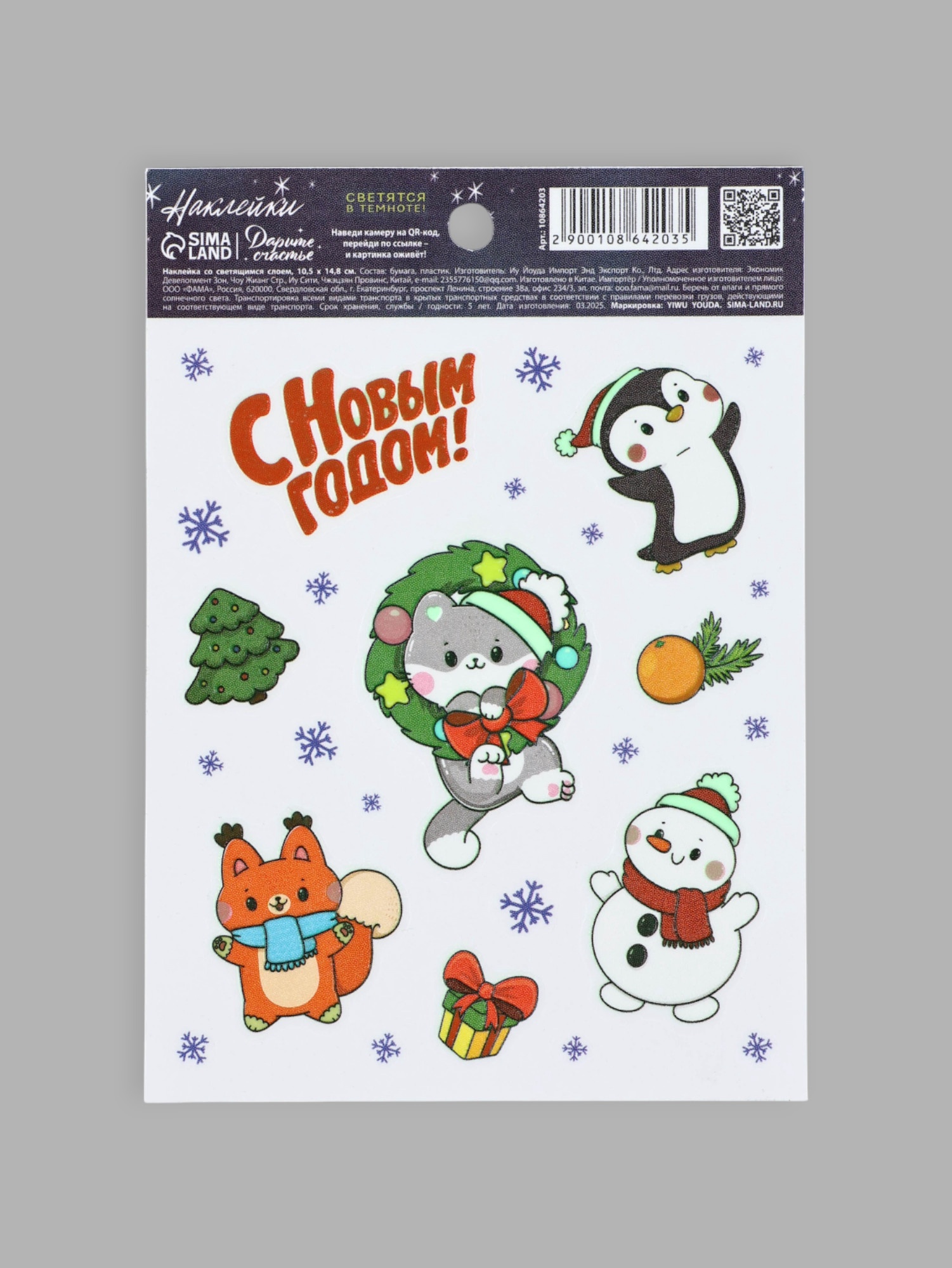 Наклейка со светящимся слоем «с новым годом!», 10.5 х 14.5 см
