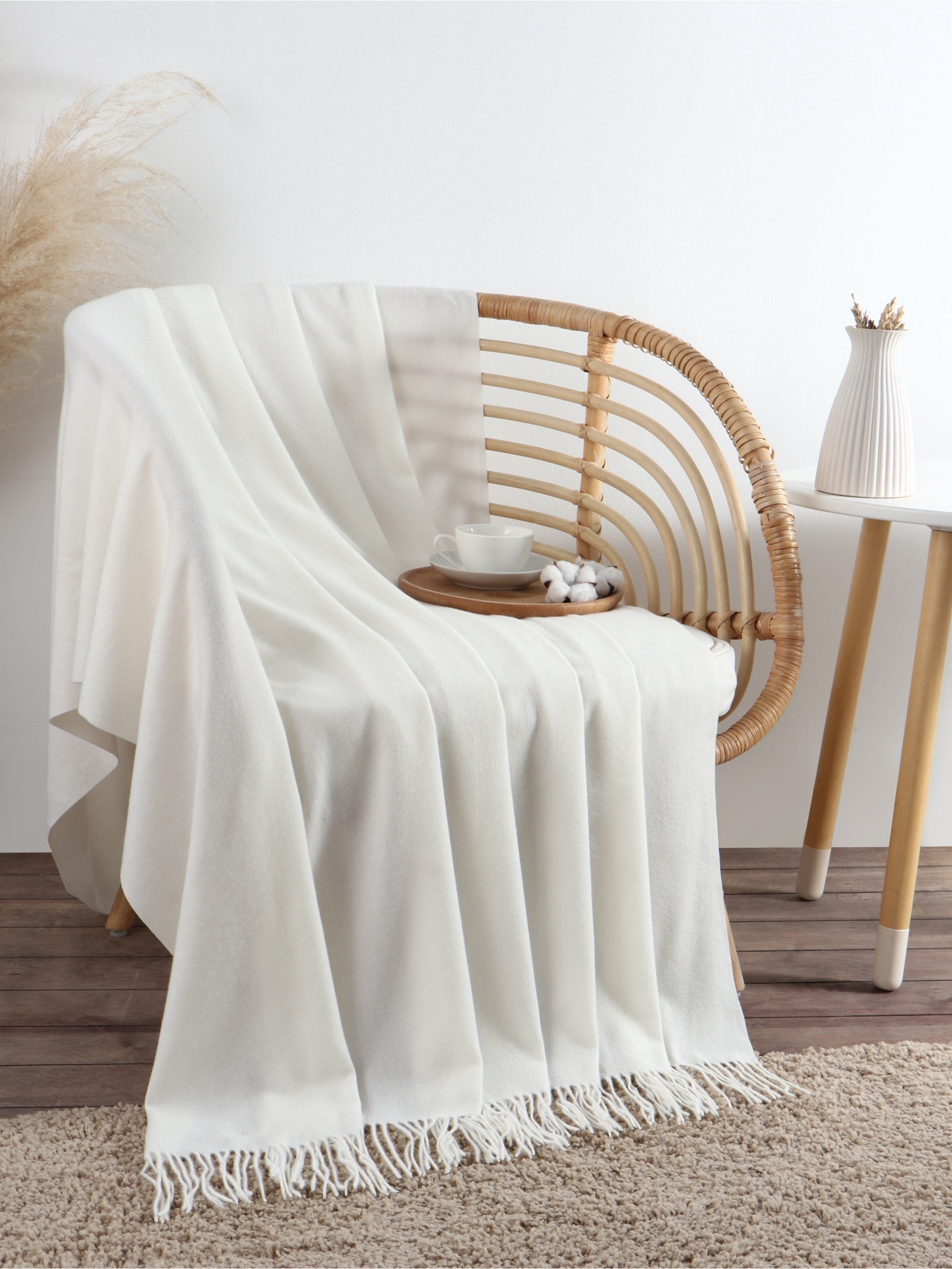 Плед с бахромой «этель» Light Touch, 130 190 см, белый