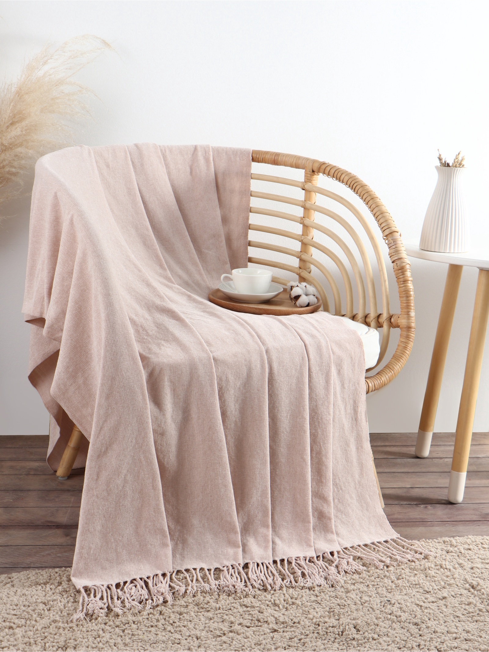 Плед с бахромой «этель» Powder, 135 180 см, пудра