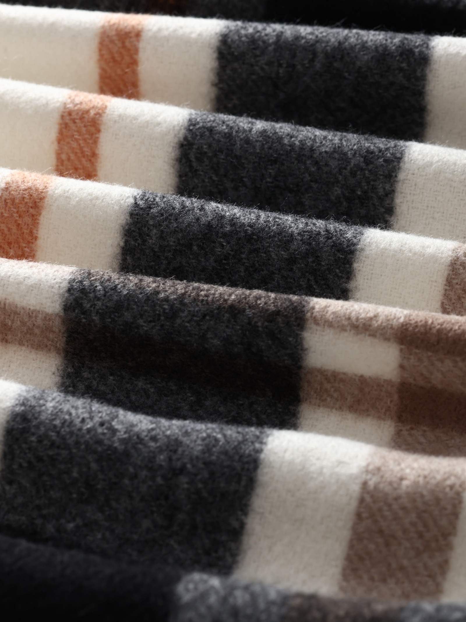 Плед с бахромой «этель» black square, 120 120 см, бежевый. Квадратный плед в полоску с бахромой создаёт уютную атмосферу в доме и становится верным спутником в поездках. Классическое сочетание бежевого и чёрного цветов подходит для современного интерьера, а мягкая смесовая ткань из полиэстера и вискозы приятна на ощупь. Особенности Универсальный размер 120 120 см подходит для укрывания и декораГоризонтальные полосы визуально расширяют пространствоБахрома по периметру добавляет текстилю характерСмесовый состав сохраняет форму после стиркиЛёгкий уход: деликатный режим стирки и сушка при низкой температуреМногосезонное решение Плед сохраняет комфортную температуру в любое время года - согревает зимними вечерами и не перегревает летом. Его можно использовать как покрывало на кресло, подстилку для пикника или акцентный элемент домашнего текстиля. Практичность в деталях Состав ткани сочетает прочность полиэстера с мягкостью вискозы. Плед не требует глажки, сохраняет цвет после многократных стирок и долго служит без потери формы. Бахрома обработана так, чтобы не осыпаться со временем. Набор:Нет|Цвет:Чёрный|Цвет:Бежевый|Размер, см:120 х 120|Наличие рукавов:Нет|Наличие подушки:Нет|Тематика:Полоски, полоса|Вид упаковки:Пакет|Декоративные элементы:Бахрома|Рекомендации по уходу:Барабанная сушка при низкой температуре|Рекомендации по уходу:Деликатная стирка при 30 °С|Рекомендации по уходу:Не отбеливать|Рекомендации по уходу:Глажка запрещена|Состав ткани:Вискоза|Состав ткани:Полиэстер|В подарочной упаковке:Нет|Размер постельного белья:1-спальное и меньше|Страна:Россия  развернуть описание ▼