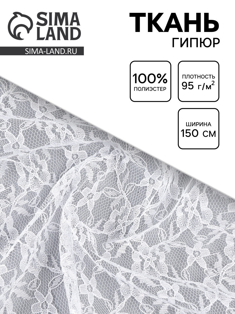 Ткань для рукоделия и шитья, гипюр, ширина 150 см, белая