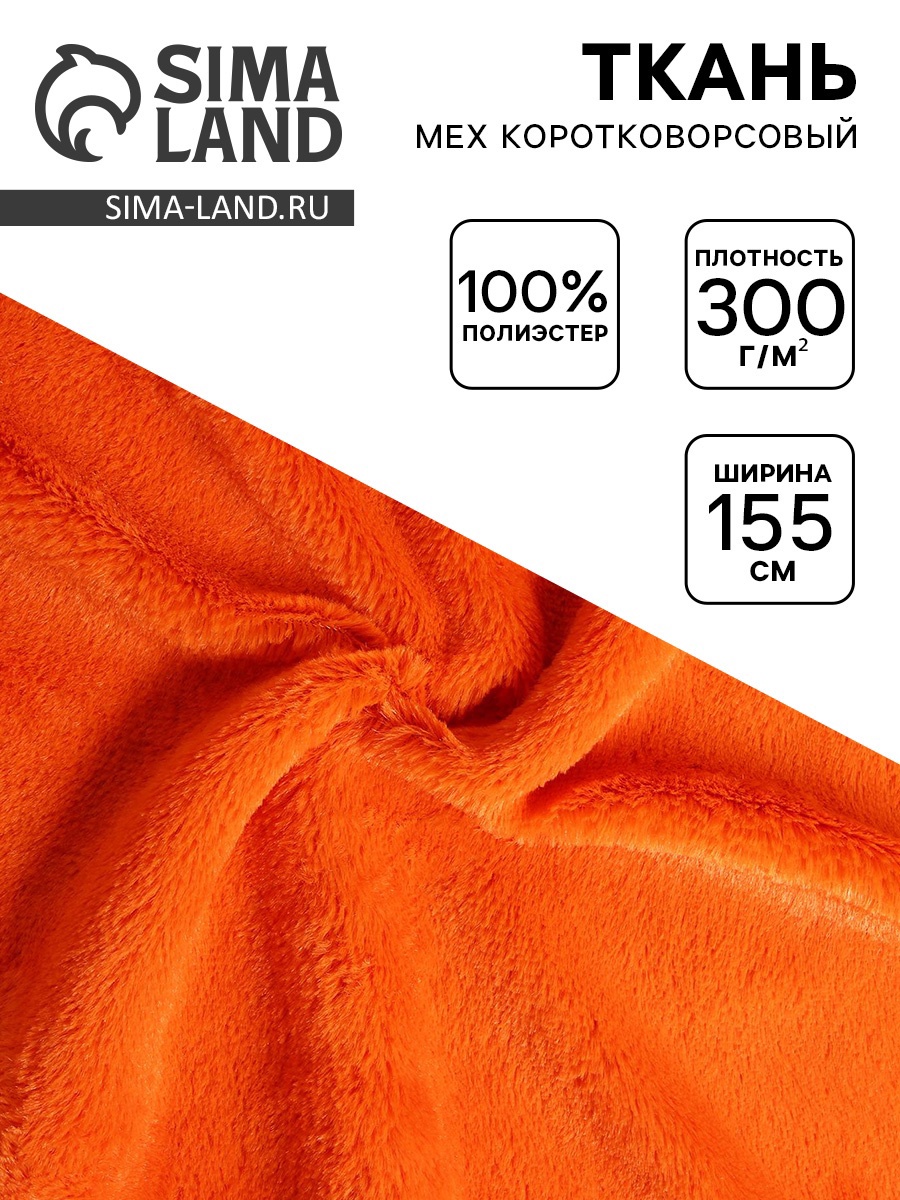 Ткань для рукоделия и шитья, мех коротковорсовой на трикотажной основе, ширина 155 см, оранжевая