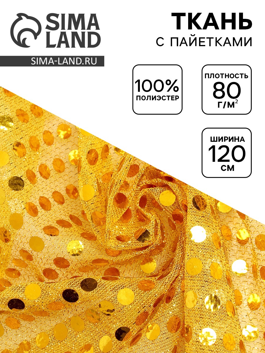 Ткань для рукоделия и шитья, трикотаж с нанесением фольгированного рисунка пайетками, ширина 120 см, жёлтая Ткань для рукоделия и шитья, трикотаж с нанесением фольгированного рисунка пайетками, ширина 120 см, жёлтая