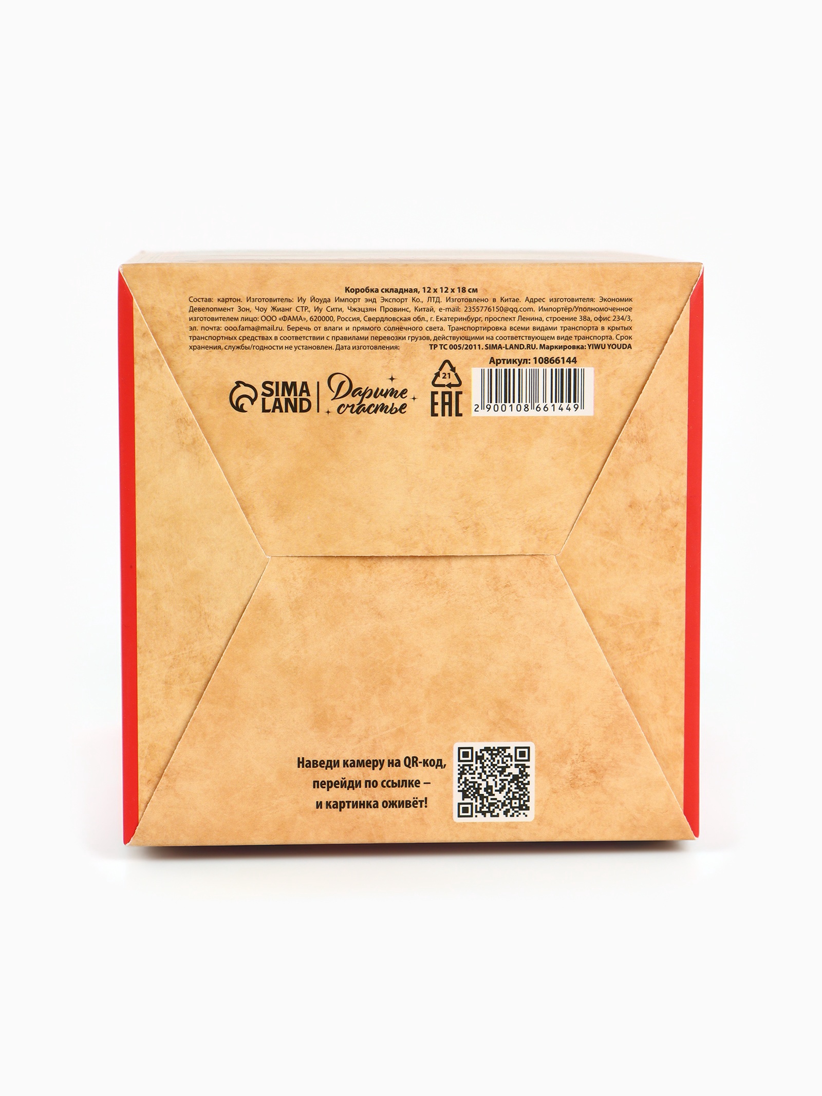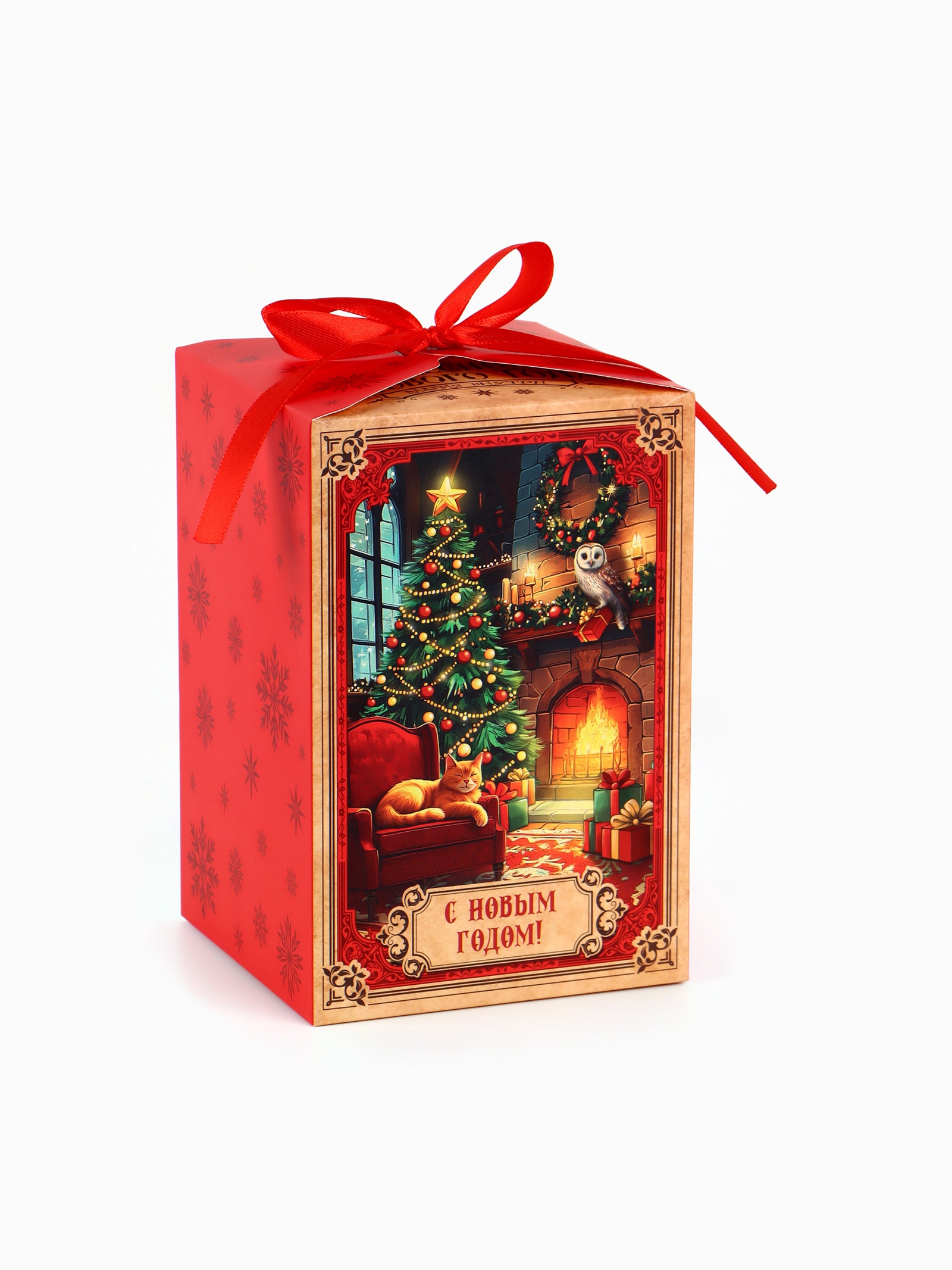 Коробка подарочная складная «с новым годом», 12 х 18 х 12 см. Цвет:Красный|Форма:Прямоугольная|Плотность, г/м :250|Длина, см:12|Ширина, см:12|Высота, см:18|Тематика:Новогодняя|Символ года:Нет|Тематика праздника:Новый год|Материал:Картон|Вид:Складные коробки|Размер:Средний (18-24 см)|Окошко:Нет|Крышка-дно:Нет|Страна:Китай  развернуть описание ▼