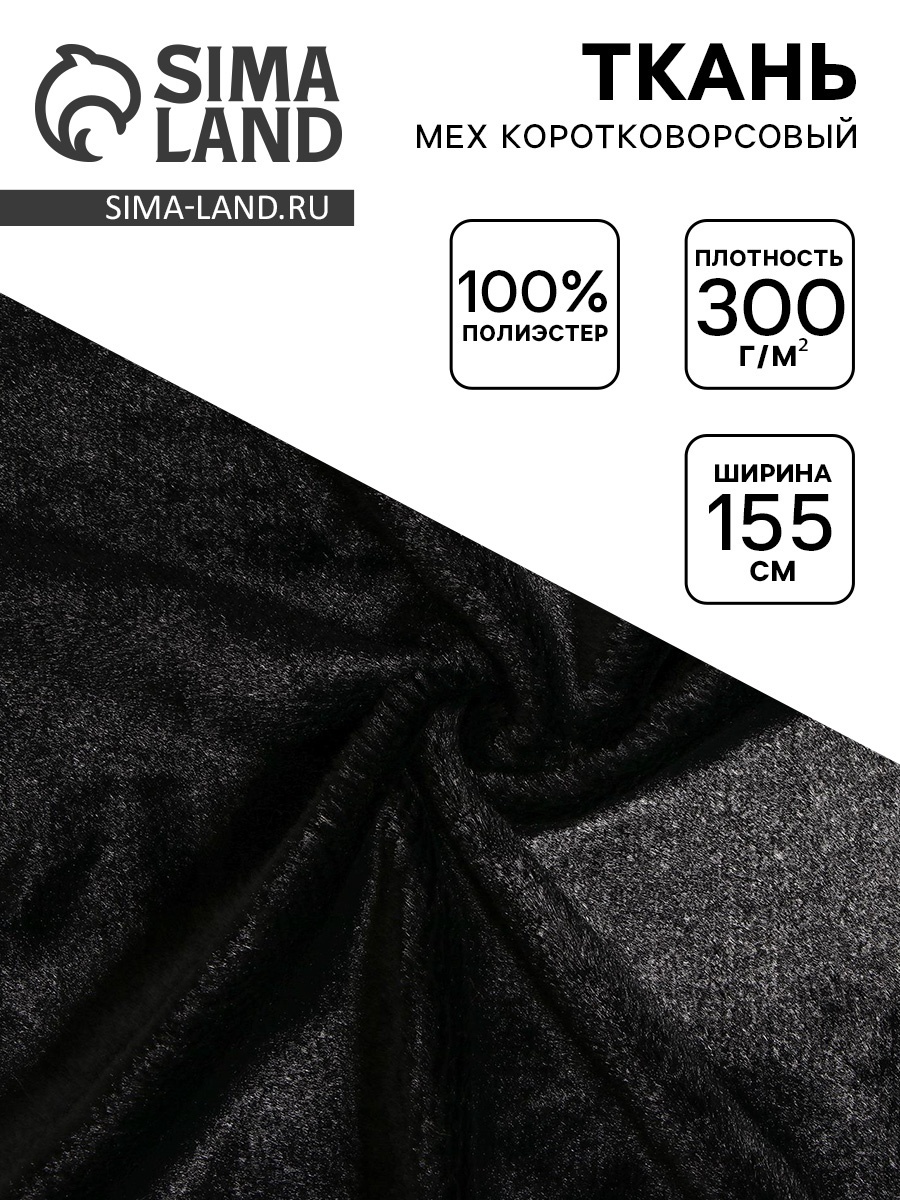 Ткань для рукоделия и шитья, мех коротковорсовой на трикотажной основе, щирина 155 см, чёрная