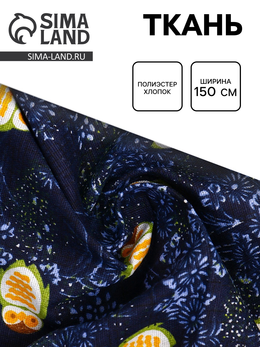 Ткань для рукоделия и шитья совы на синем, ширина 150 см
