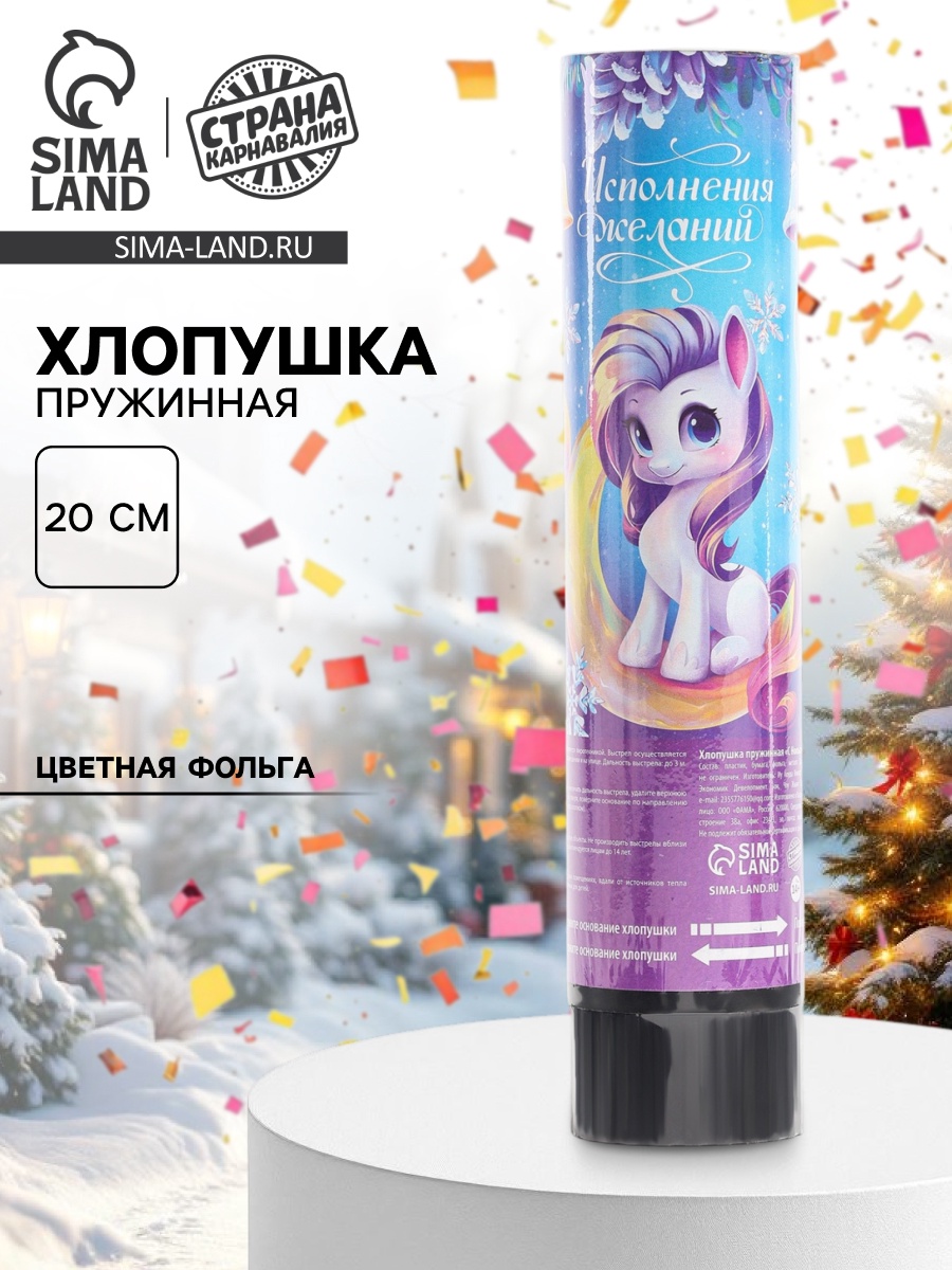 Хлопушка пружинная «с новым годом», сказка, 20 см. Набор:Нет|Длина, см:20|Символ года:Символ года 2026 (Лошадь)|Тематика праздника:Новый год|Материал:Фольга|Материал:Бумага|Материал:Пластик|Материал:Металл|Тематика хлопушки:Новый год|Вид хлопушки:Пружинная|Наполнение:Фольга|Наполнение:Бумага|Цвет наполнения:Разноцветный|Страна:Китай  развернуть описание ▼