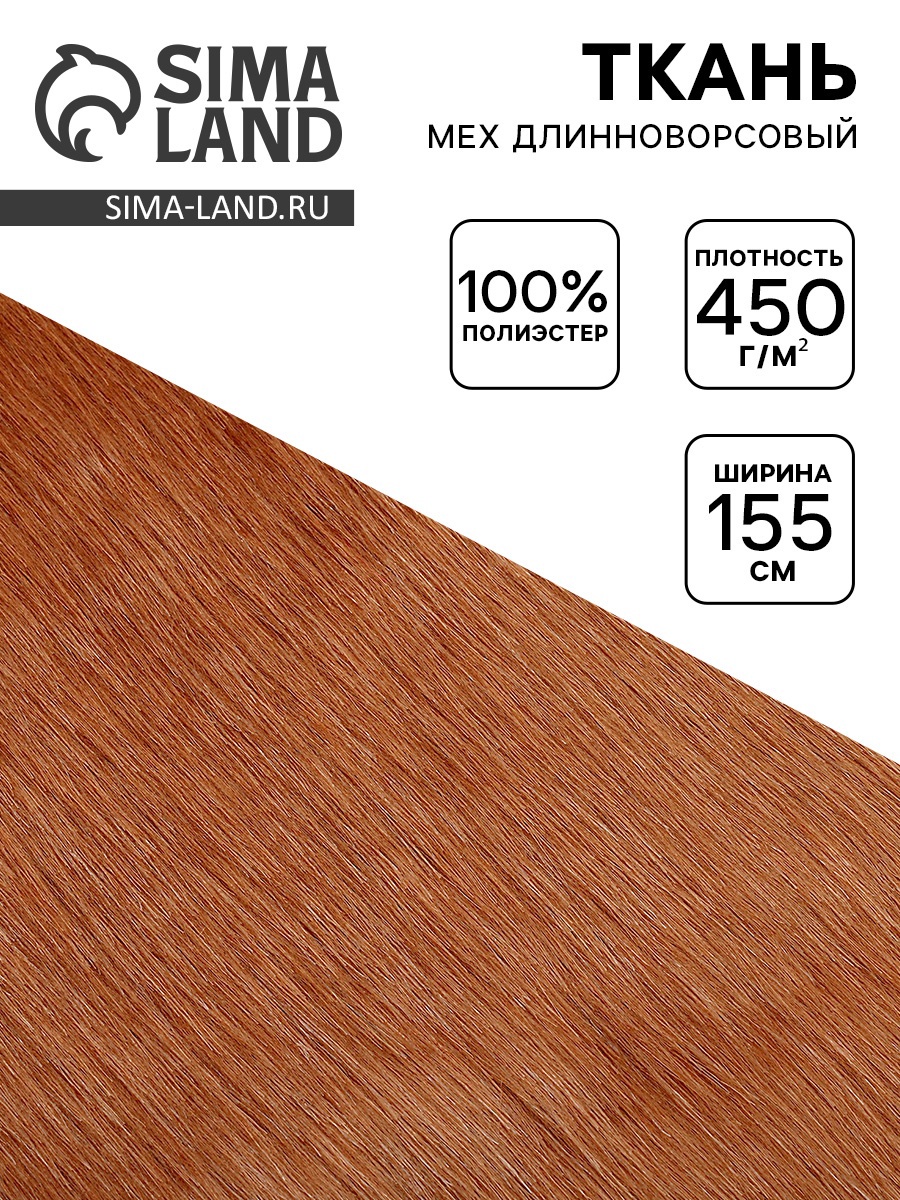 Ткань для рукоделия и шитья, мех длинноворсовой на трикотажной основе, ширина 155 см, терракотовая
