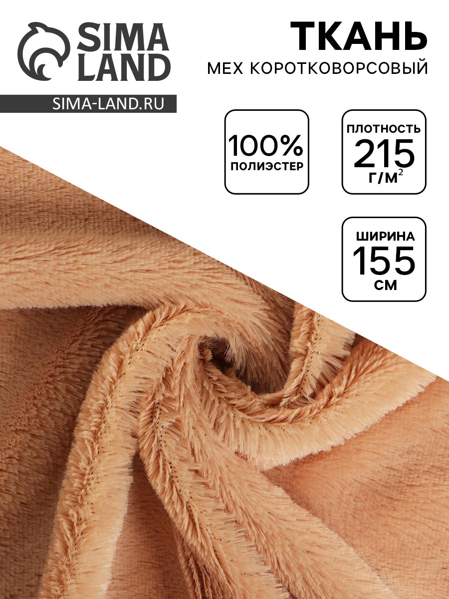 Ткань для рукоделия и шитья, мех коротковорсовой на трикотажной основе, ширина 155 см, светло-коричневая
