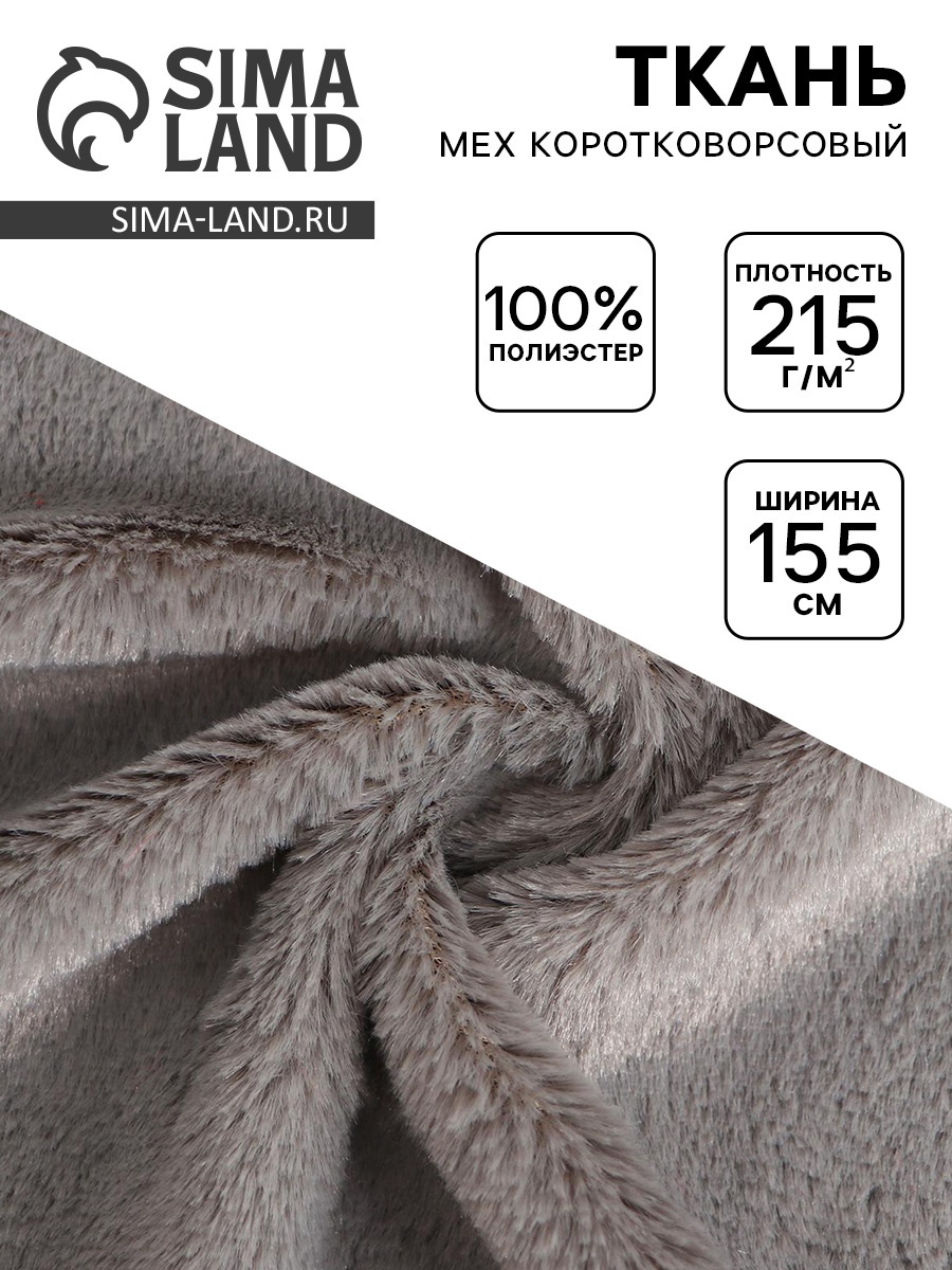 Ткань для рукоделия и шитья, мех коротковорсовой на трикотажной основе, ширина 155 см, светло, серая
