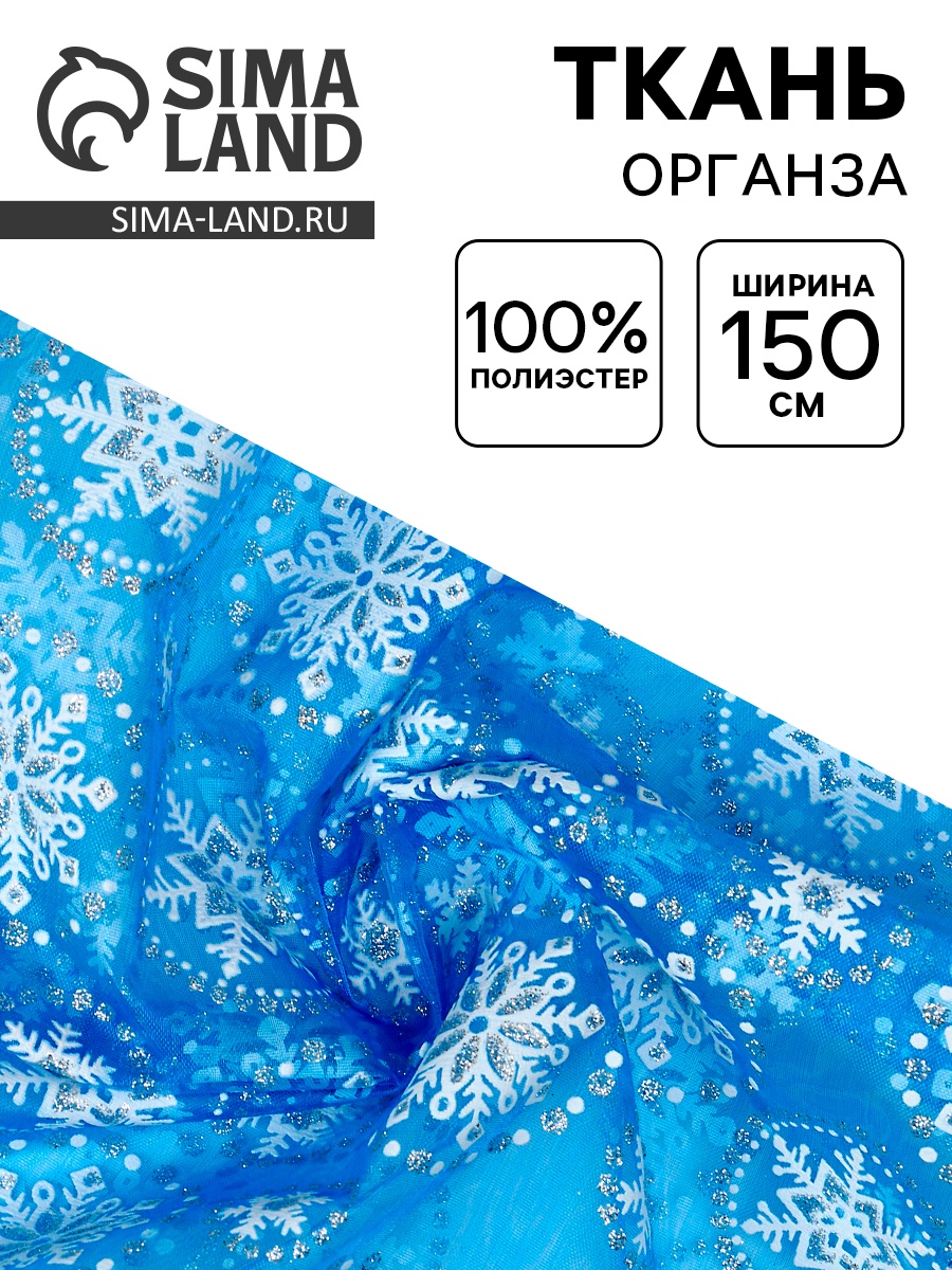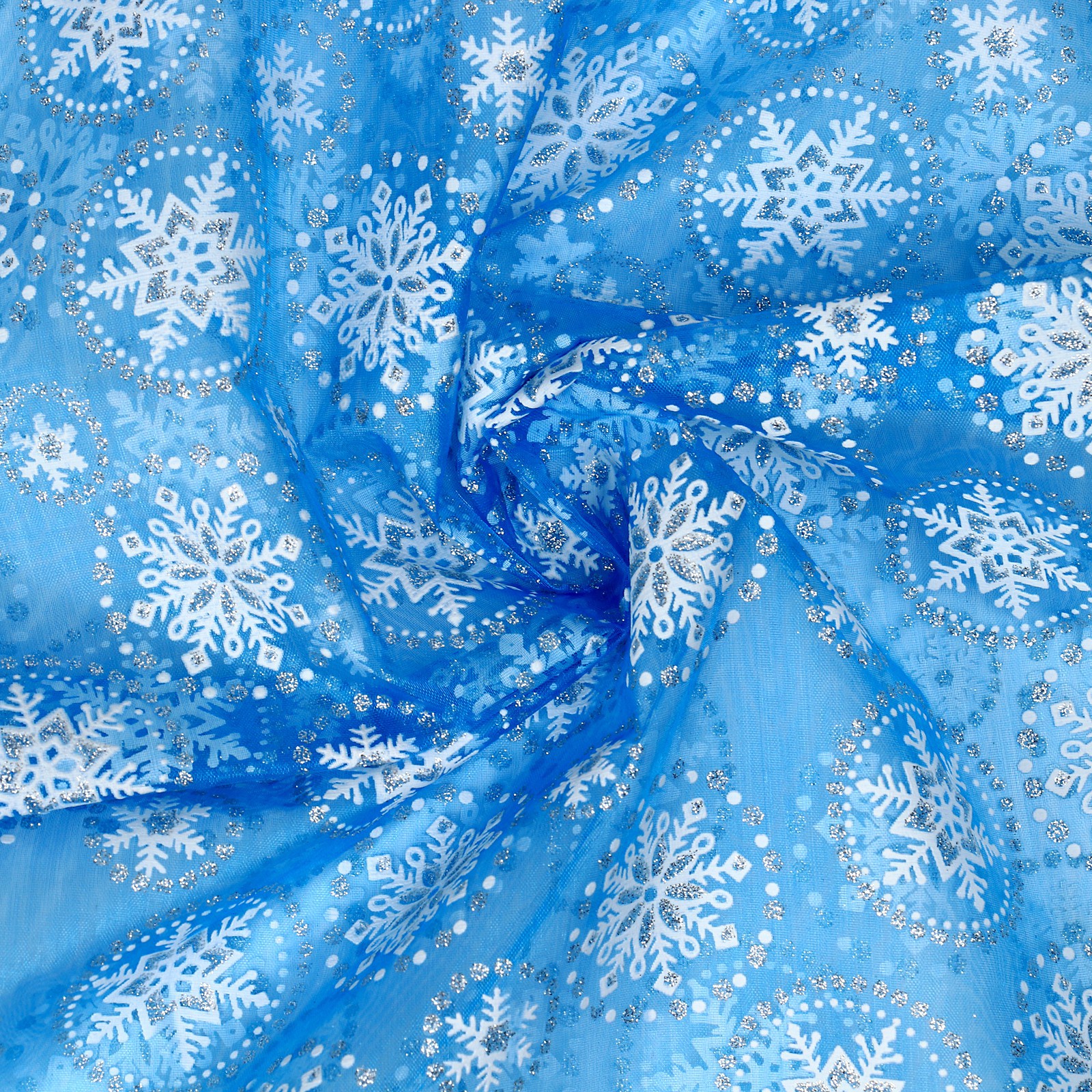 Ткань для рукоделия и шитья, органза с рисунком снежинки, ширина 150 см