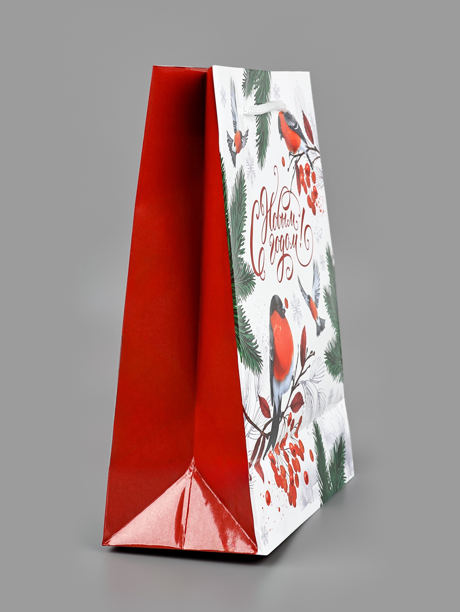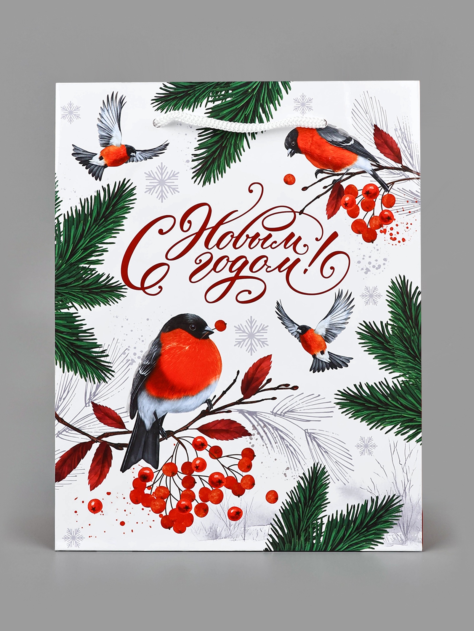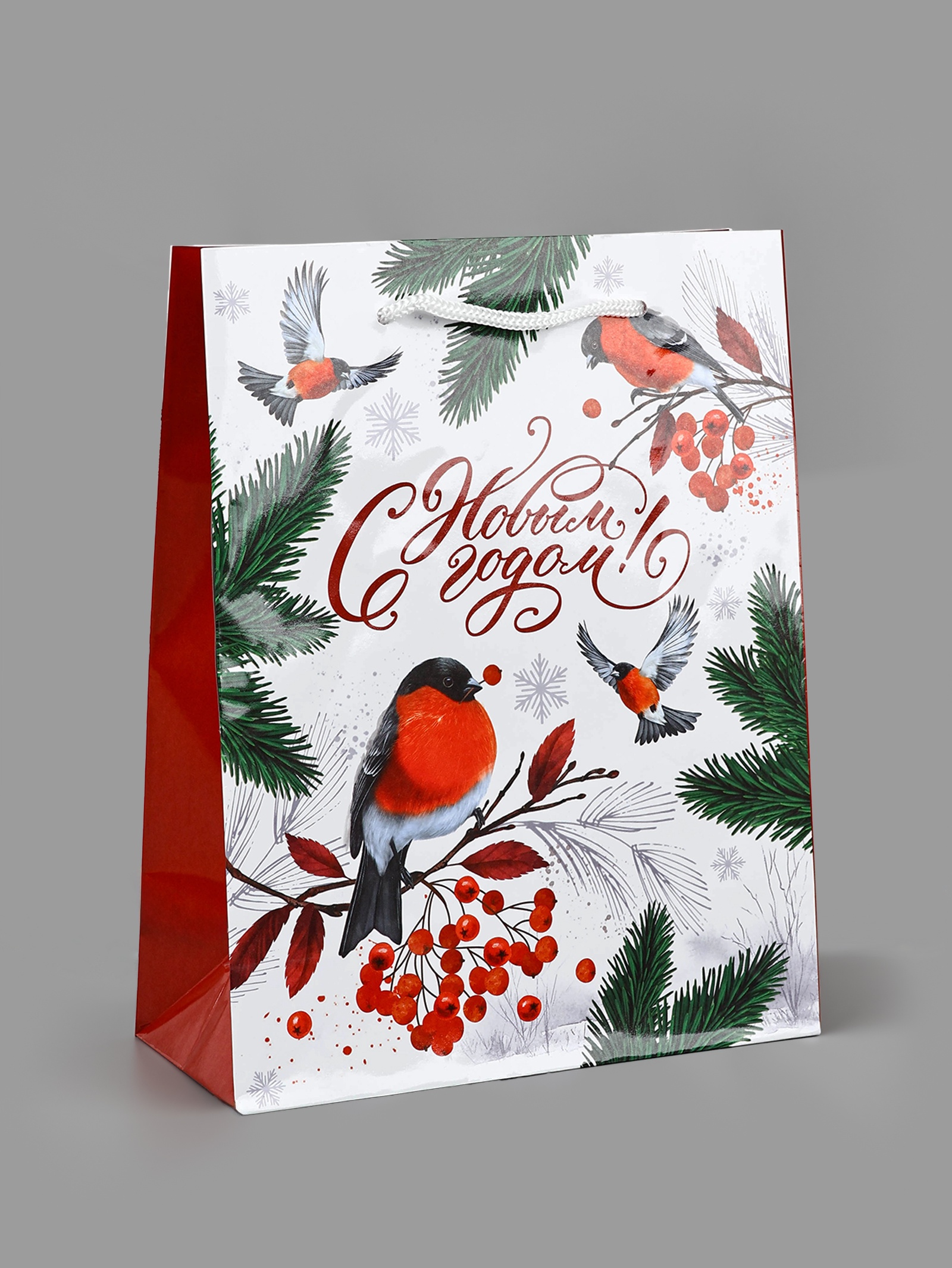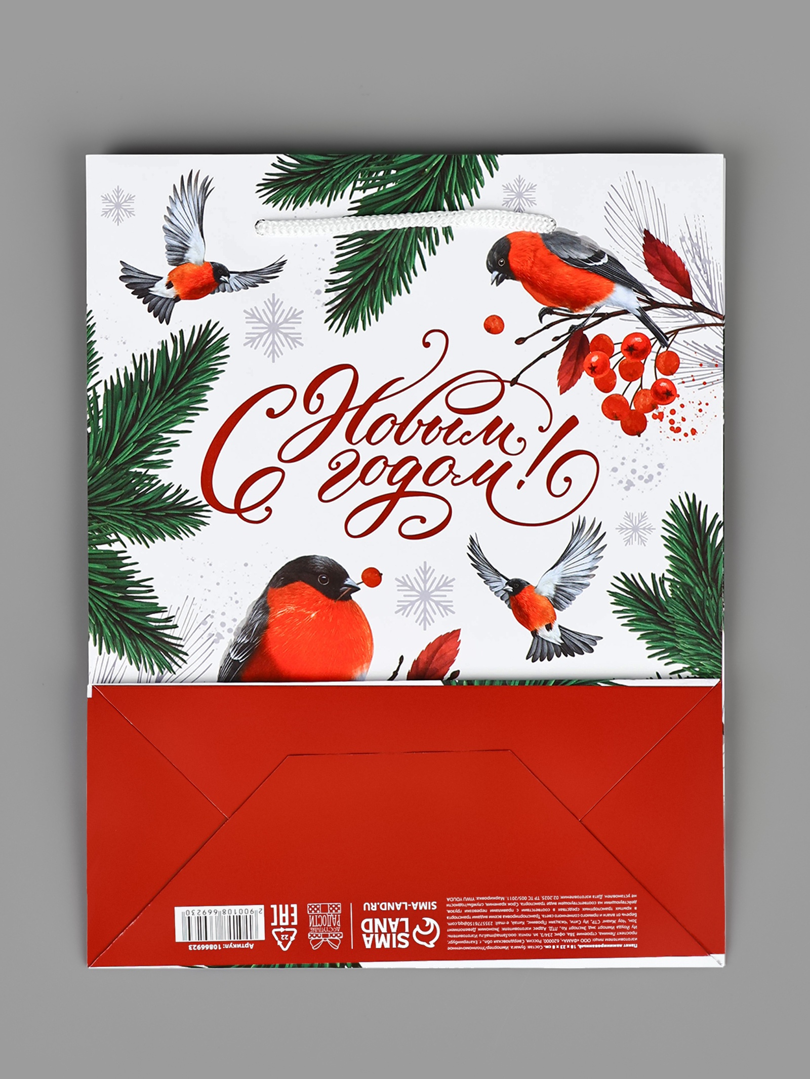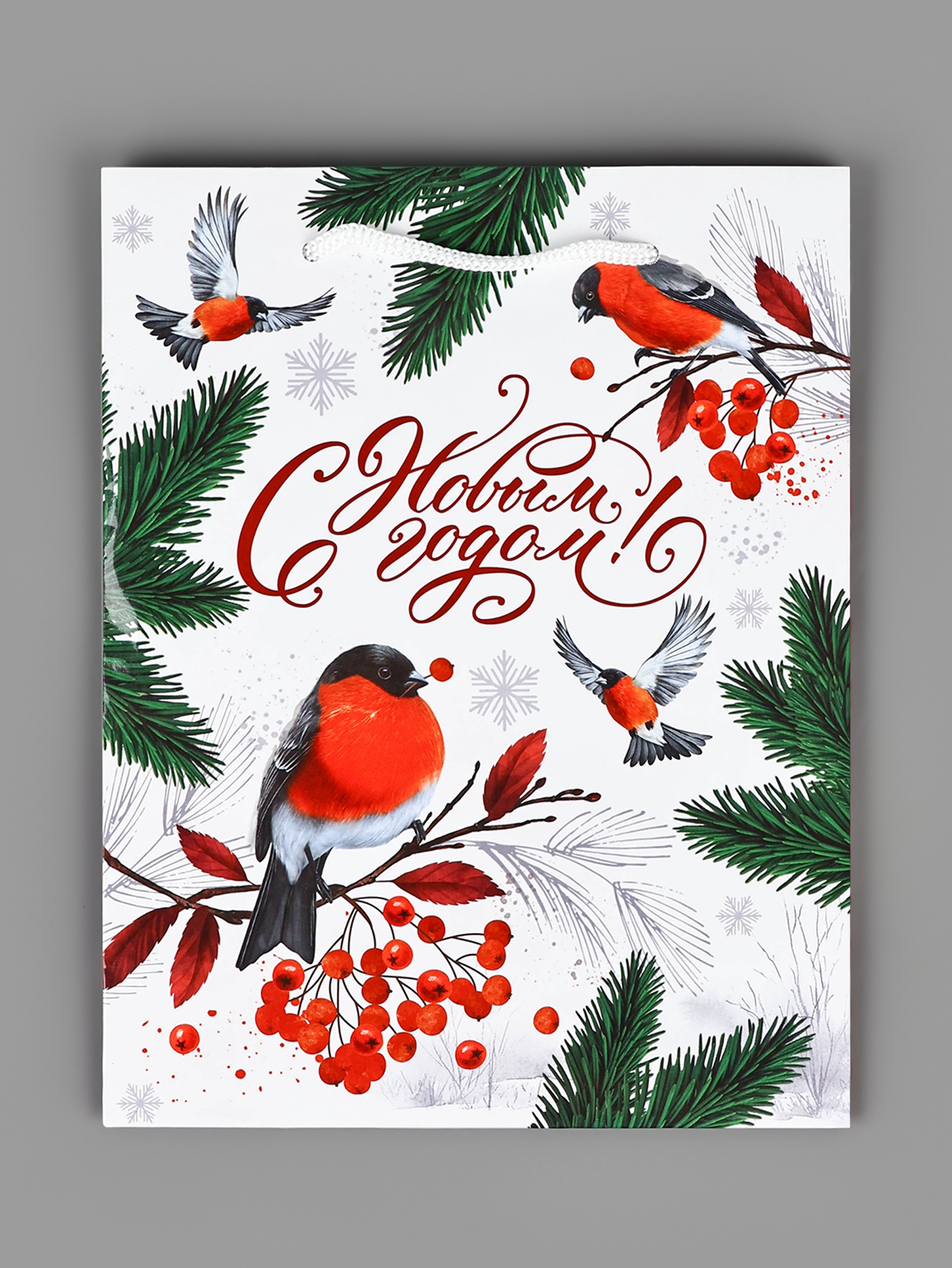 Пакет подарочный ламинированный «с новым годом», снегири, Ms 18 х 23 х 8 см