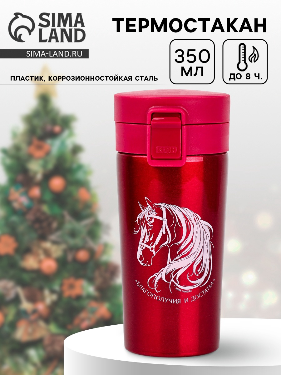 Термостакан новогодний с кнопкой «лошадь», 350 мл
