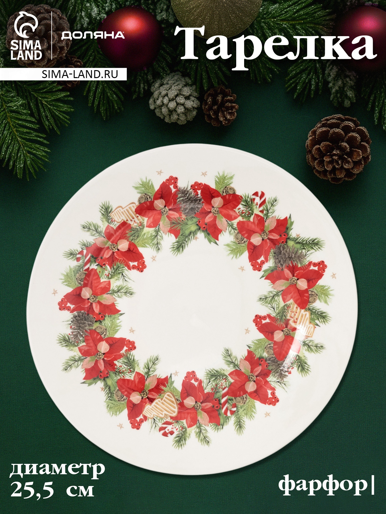 Тарелка доляна «новогоднее настроение», D=25.5 см, фарфор, белая