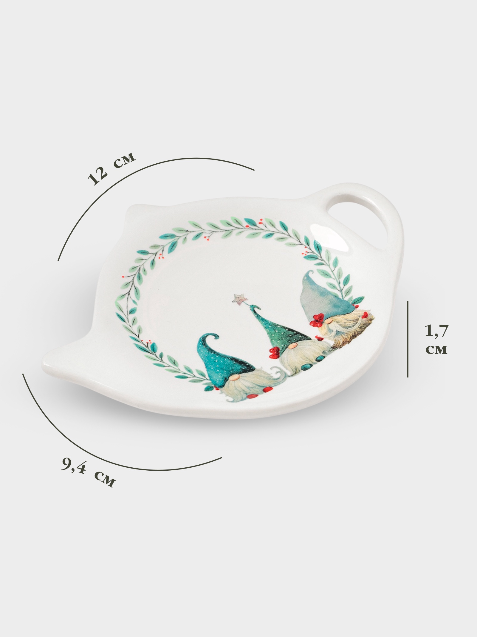 Подставка под чайный пакетик новогодняя доляна «домашние гномики», 12 9.4 1.7 см, доломит, белая.