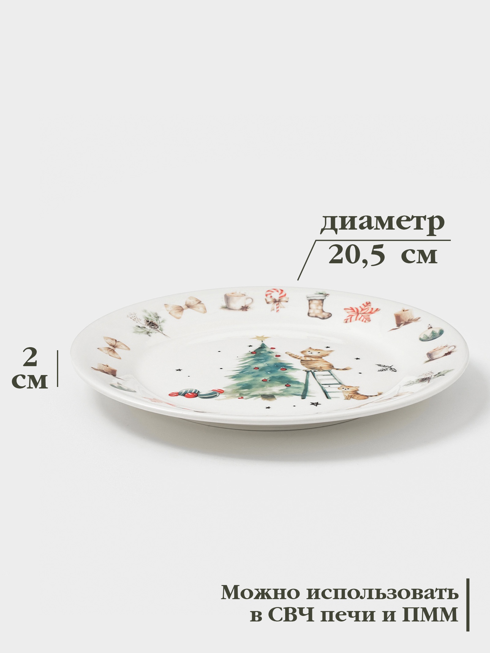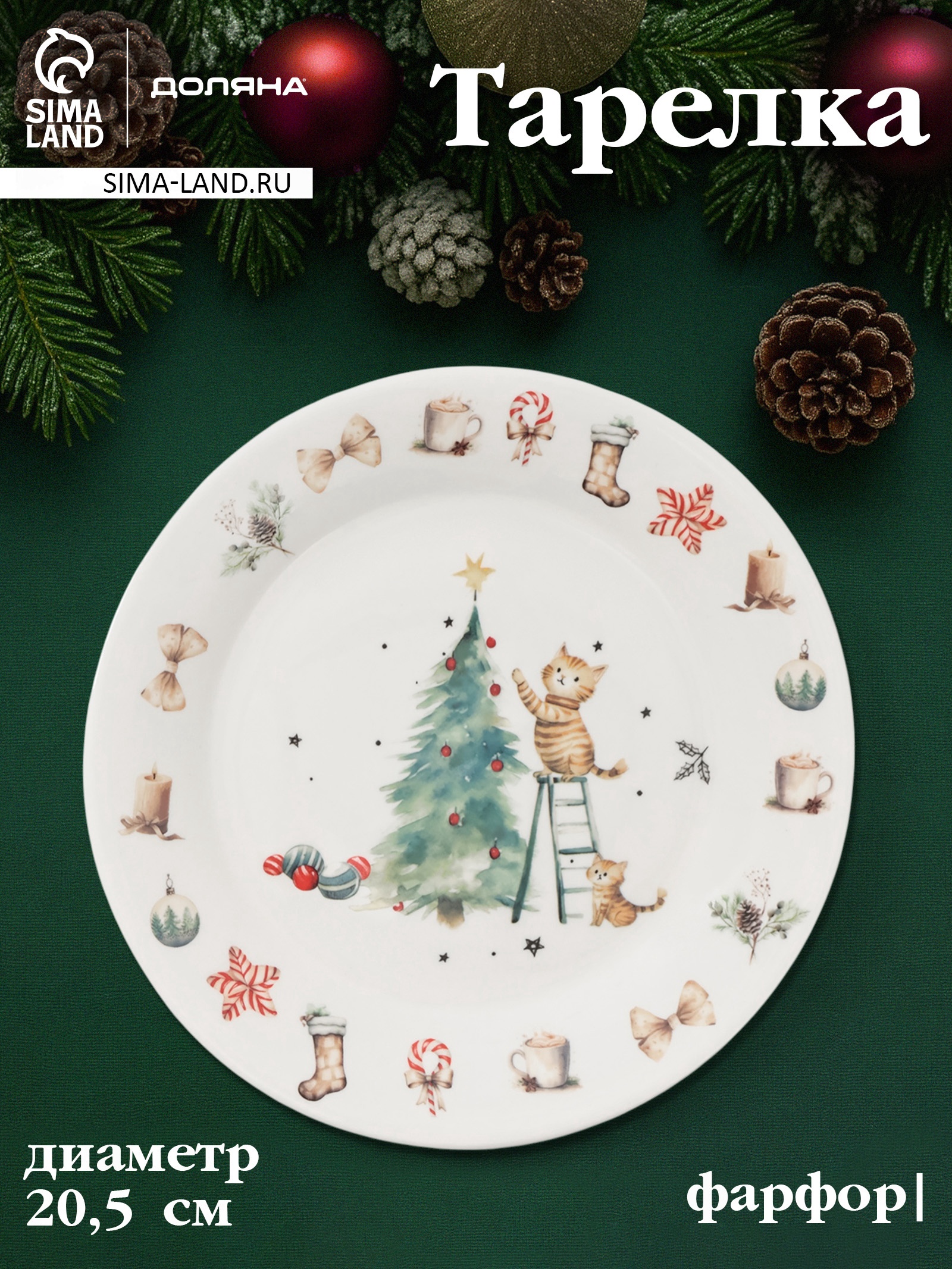 Тарелка новогодняя доляна «волшебный праздник», D=20.5 см, фарфор, белая