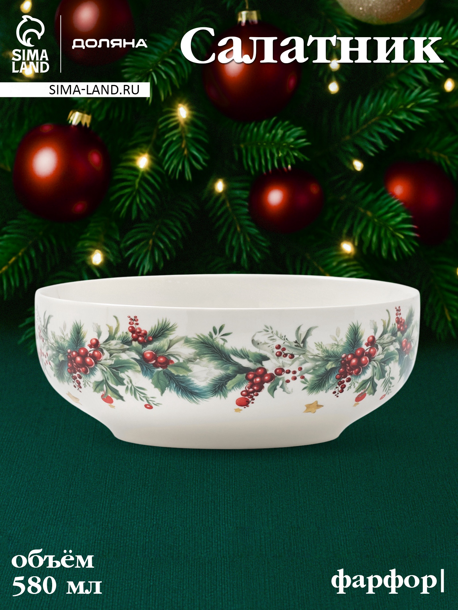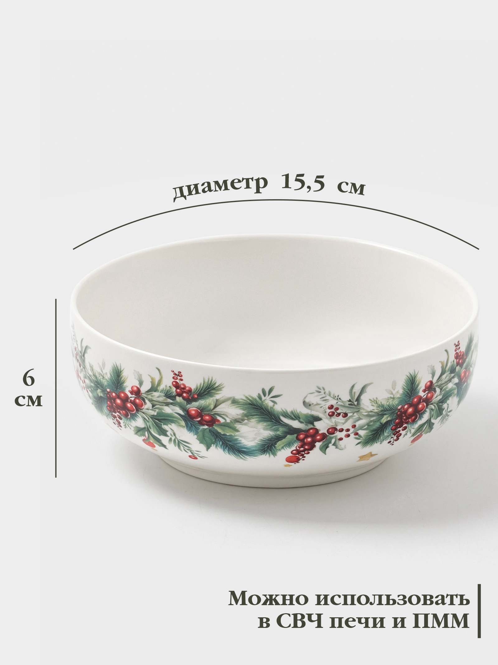 Салатник доляна «новогодние подарки», 580 мл, 15.5 6 см, фарфор, белый