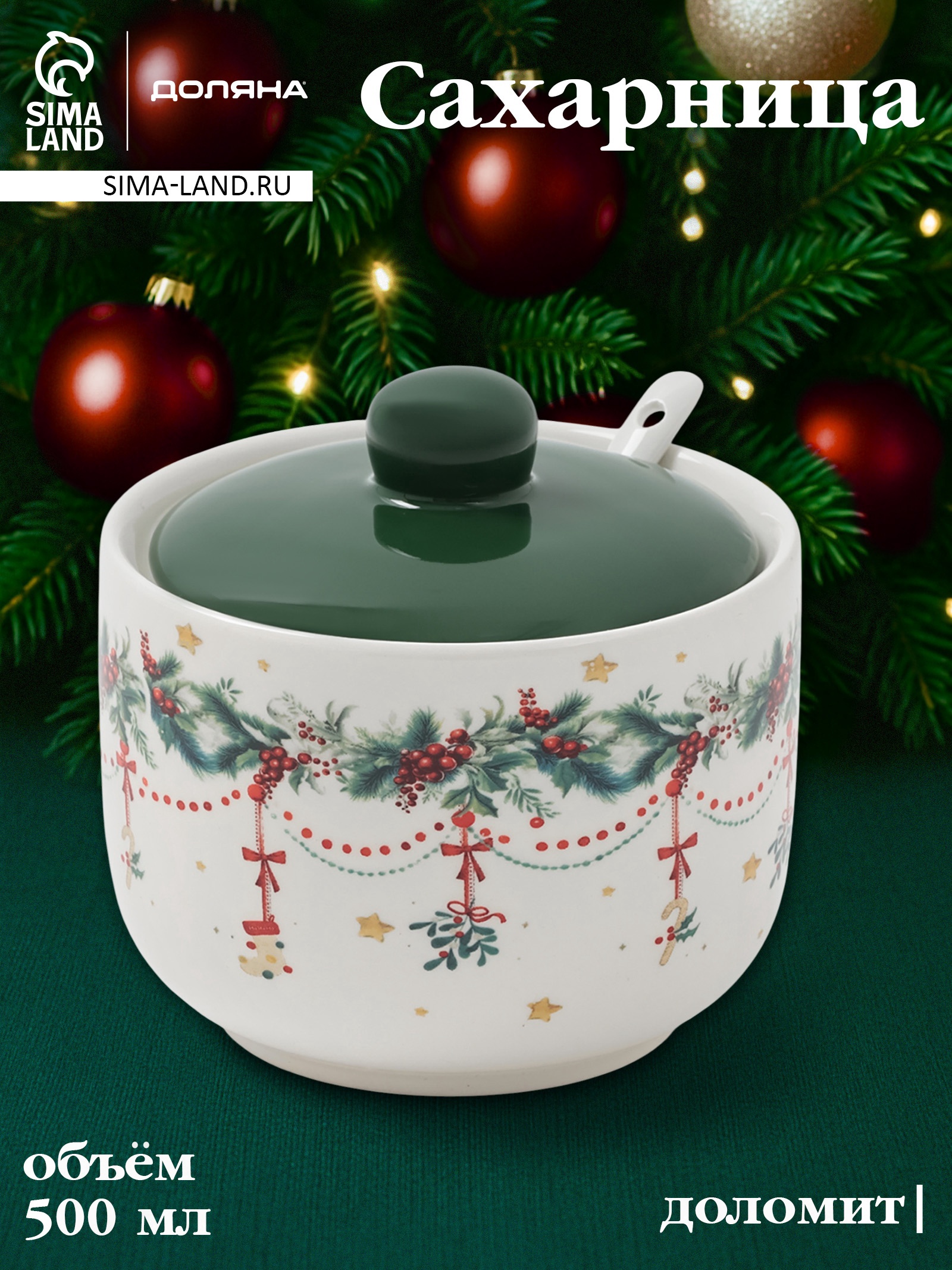 Сахарница доляна «новогодние подарки», 500 мл, доломит, белая