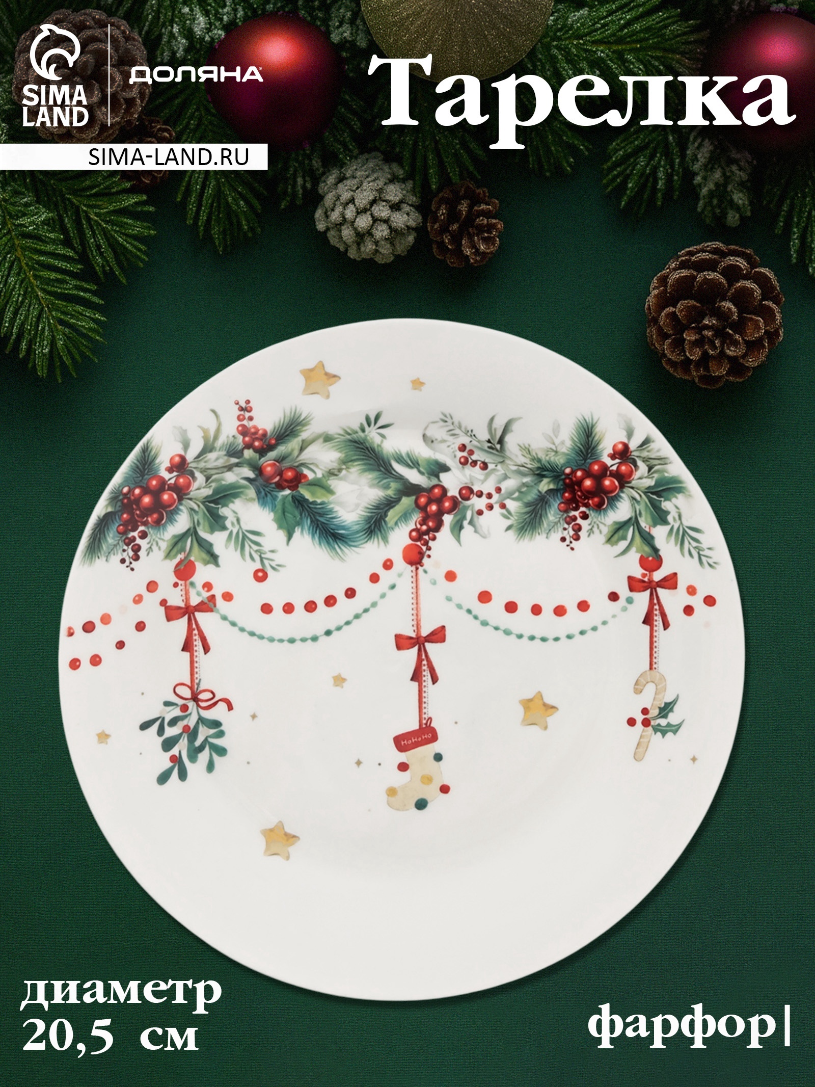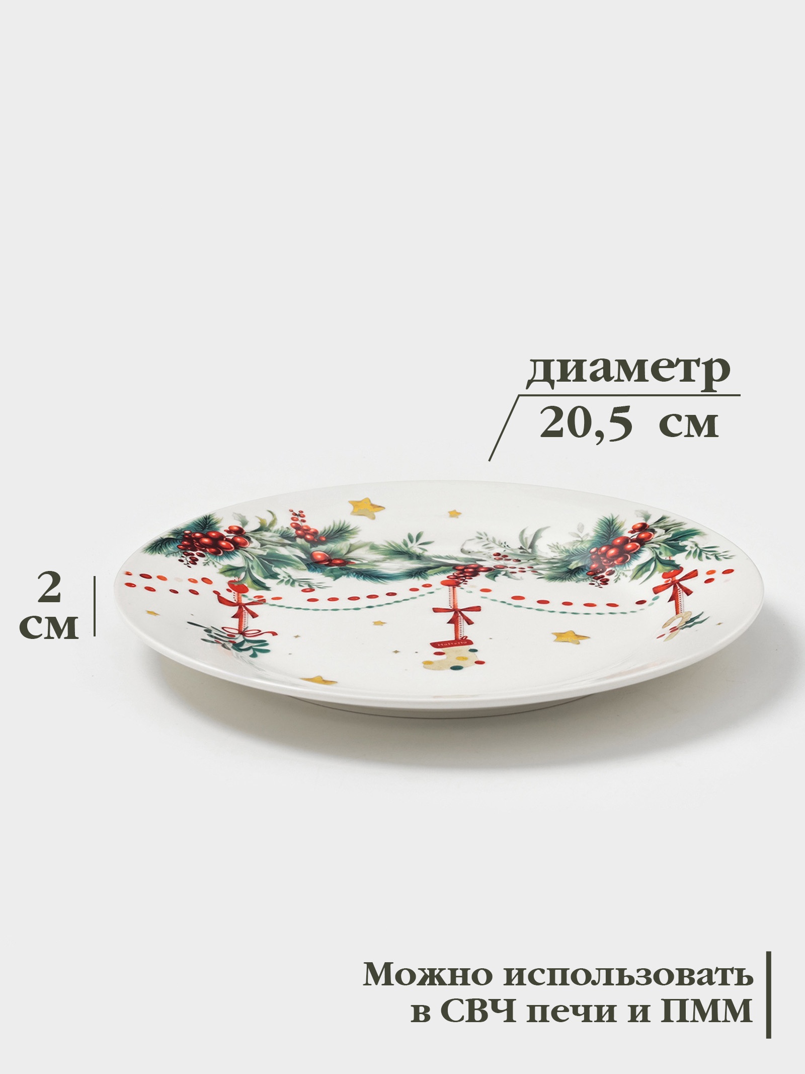 Тарелка доляна «новогодние подарки», D=20.5 см, фарфор, белая