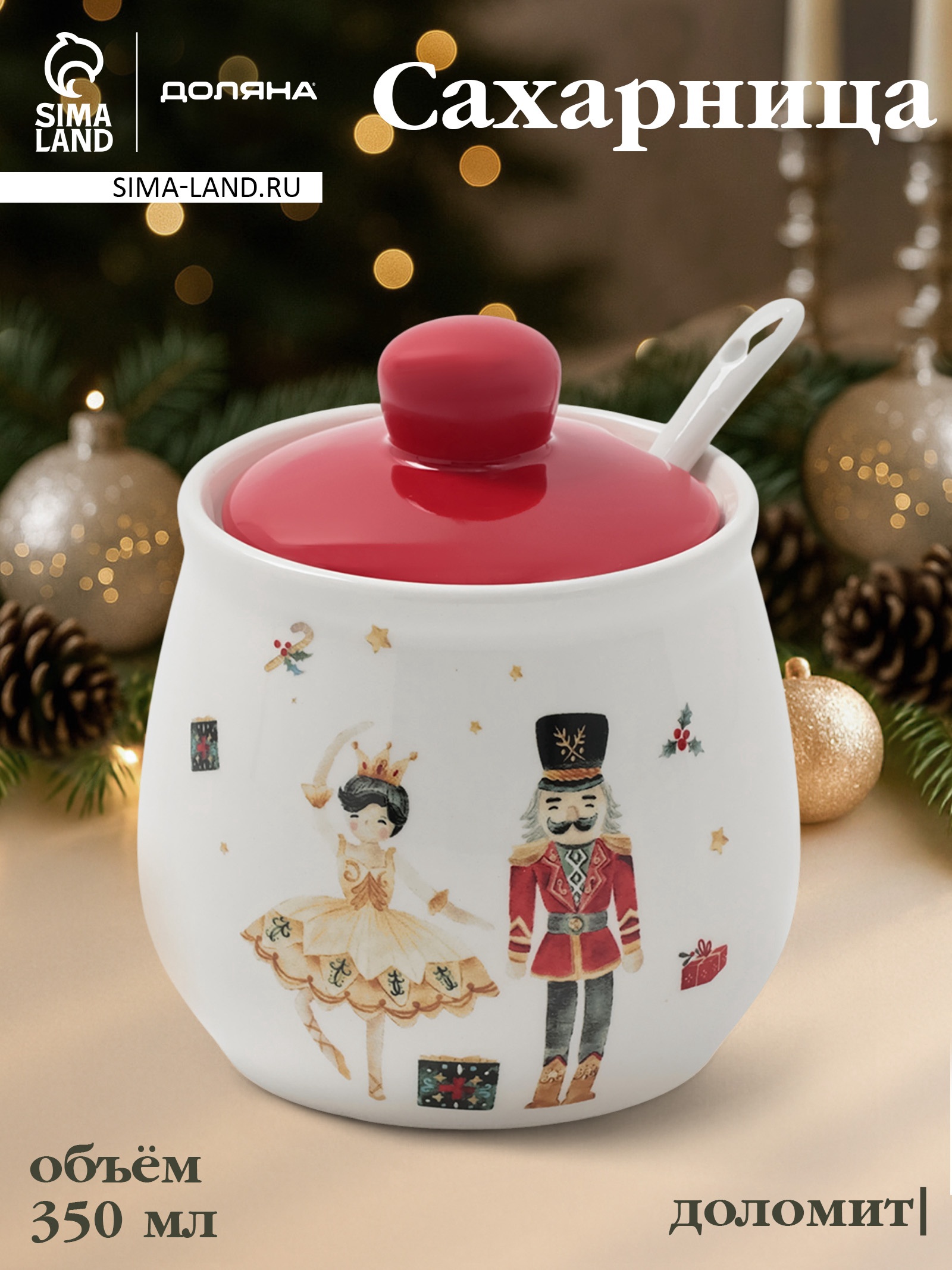 Сахарница новогодняя доляна «сказочный бал», 350 мл, доломит, белая