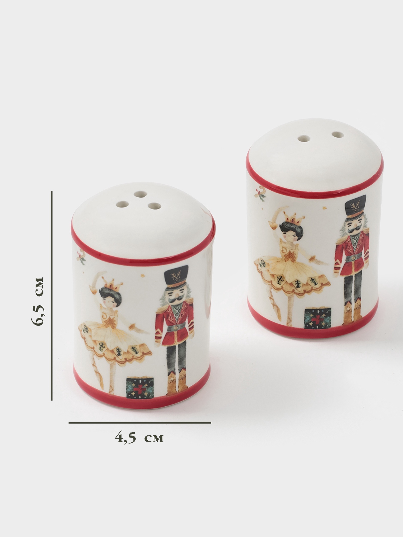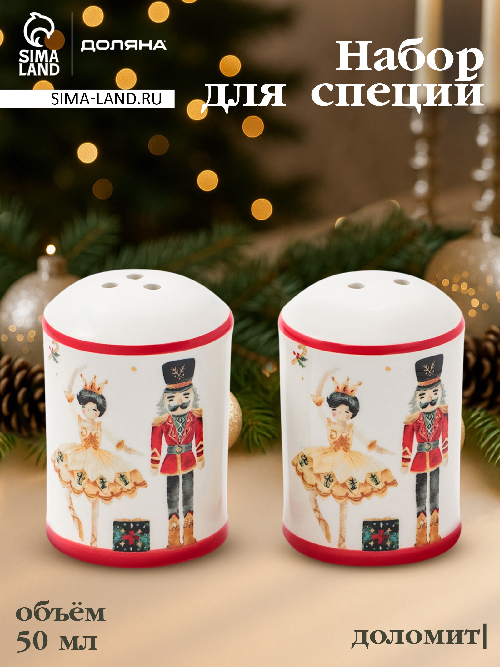 Набор для специй новогодний доляна «сказочный бал», 2 предмета: солонка, перечница 50 мл, 4.5 6.5, доломит, белый