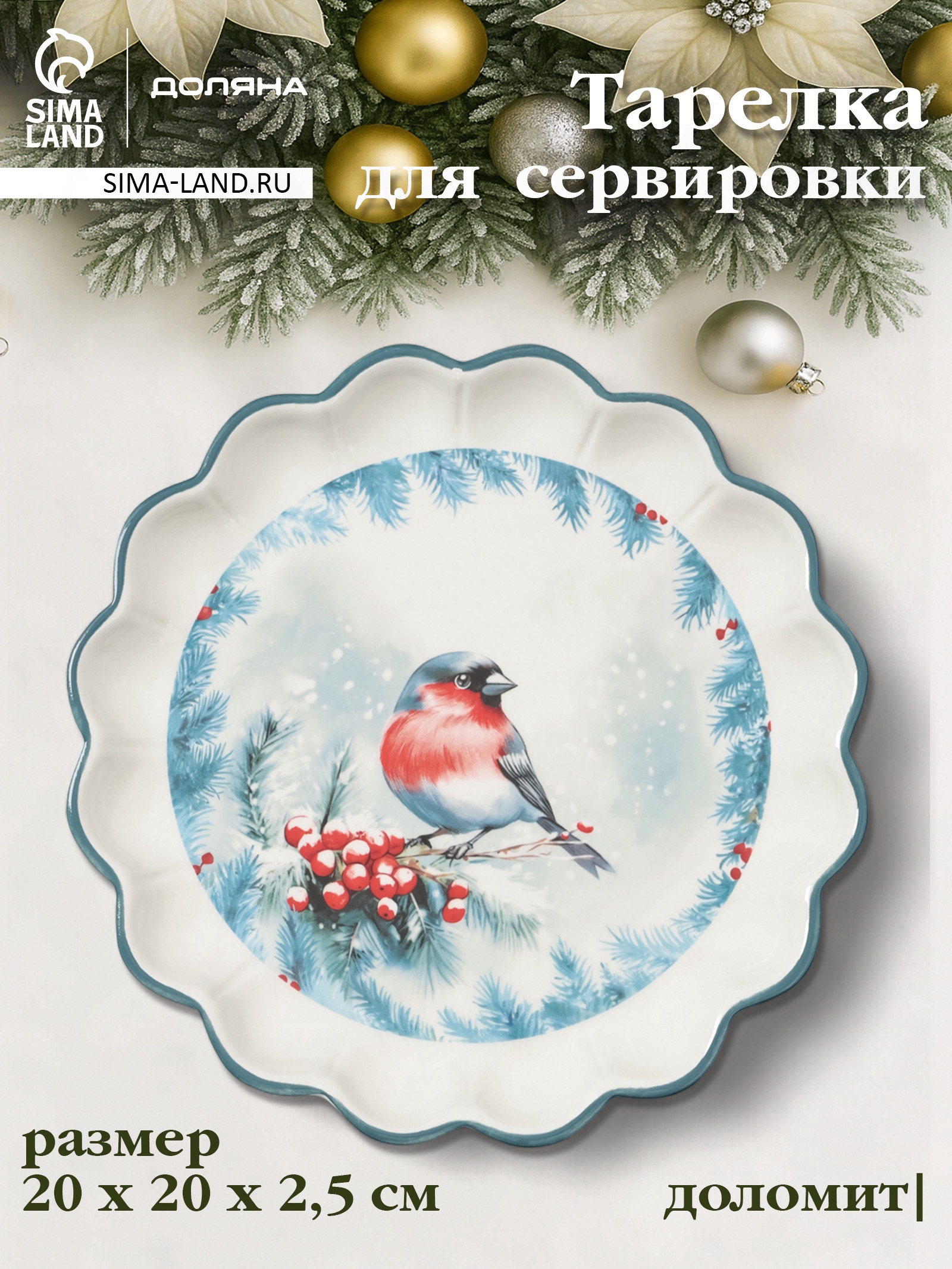 Тарелка сервировочная новогодняя доляна «зимний вечер», 20 20 2.5 см, доломит, белая