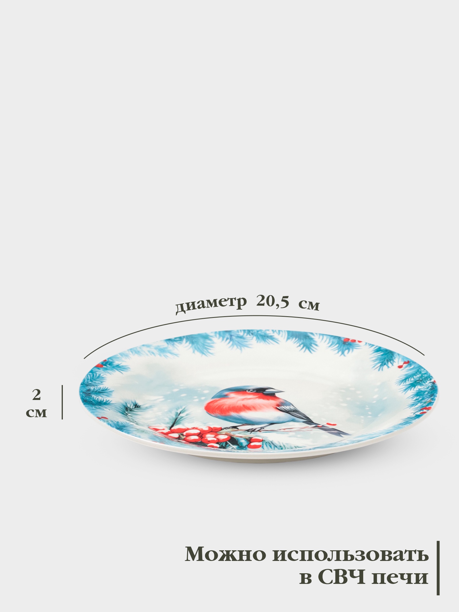 Тарелка новогодняя доляна «зимний вечер», D=20.5 см, фарфор, белая