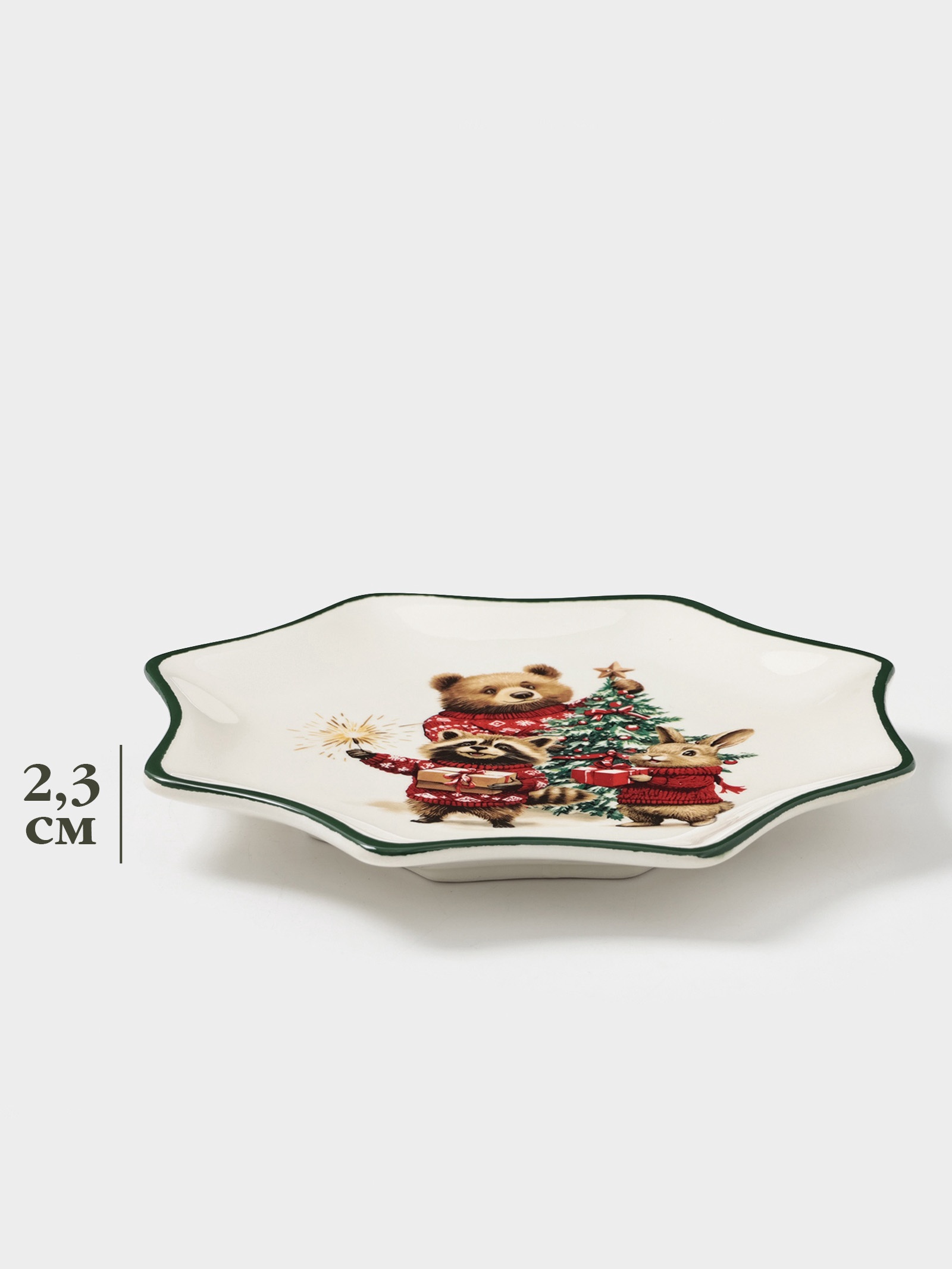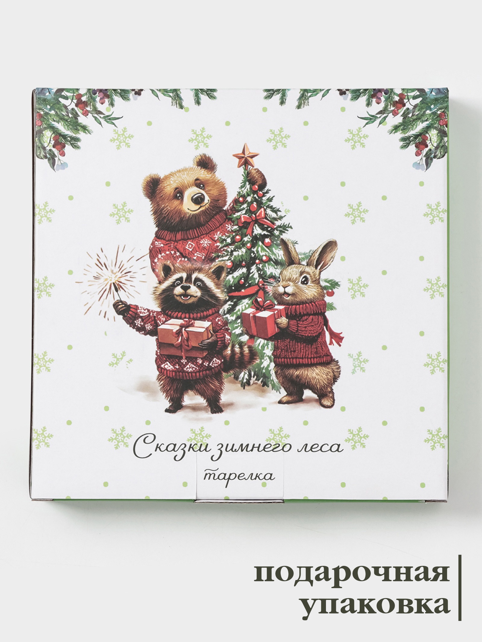 Тарелка сервировочная новогодняя доляна «сказки зимнего леса», 20 20 2.3 см, доломит, белая