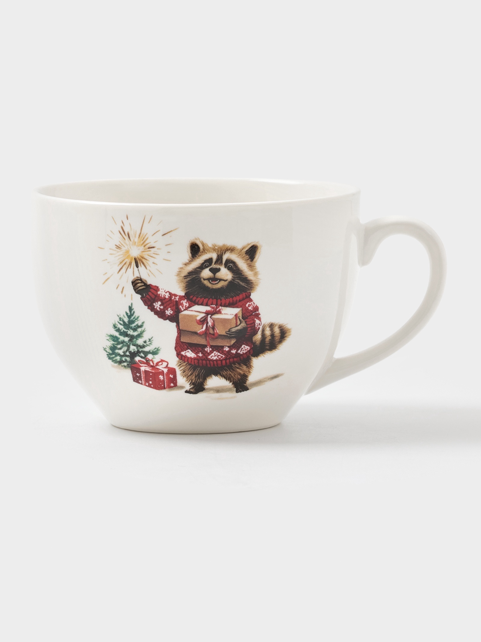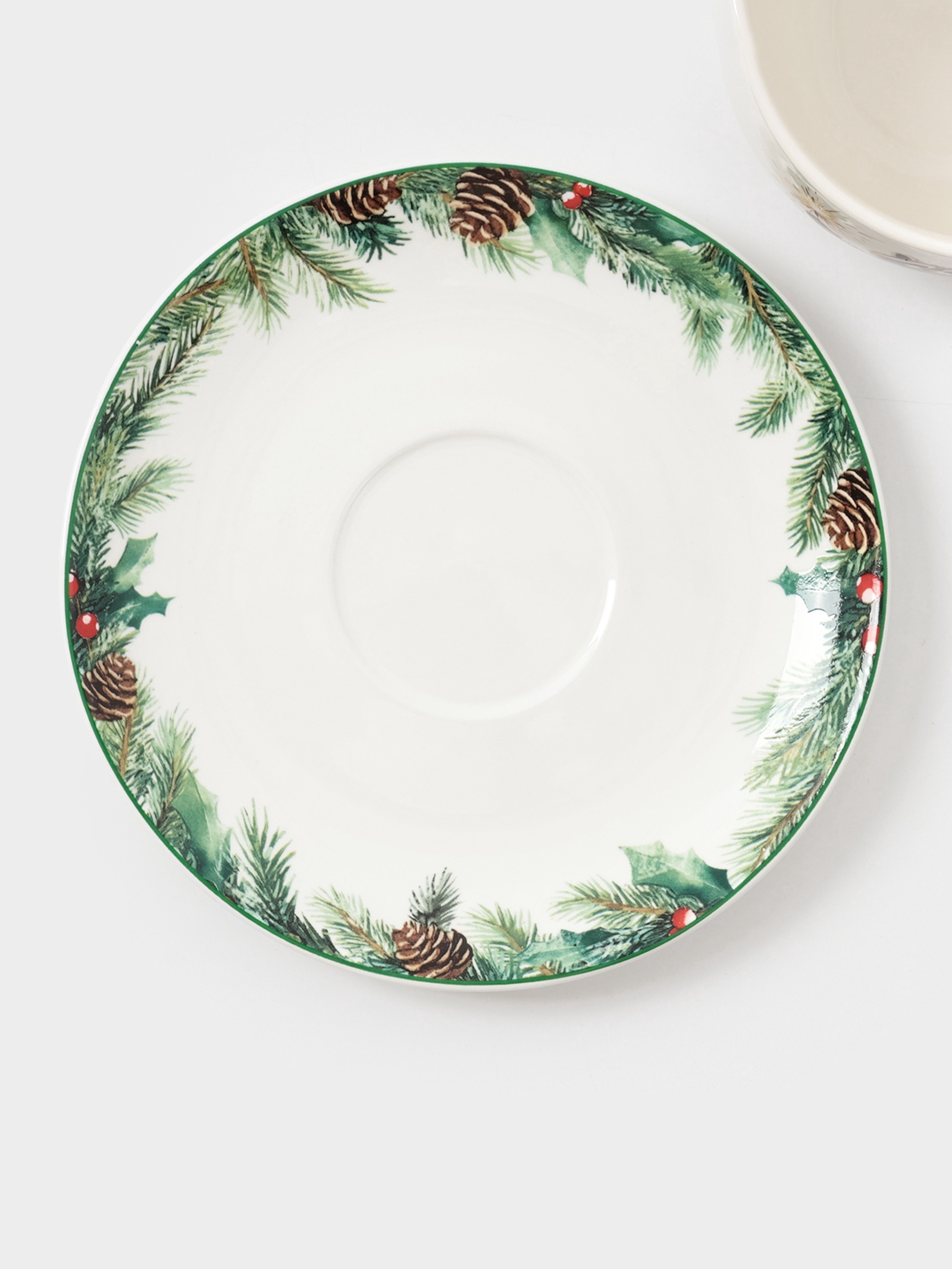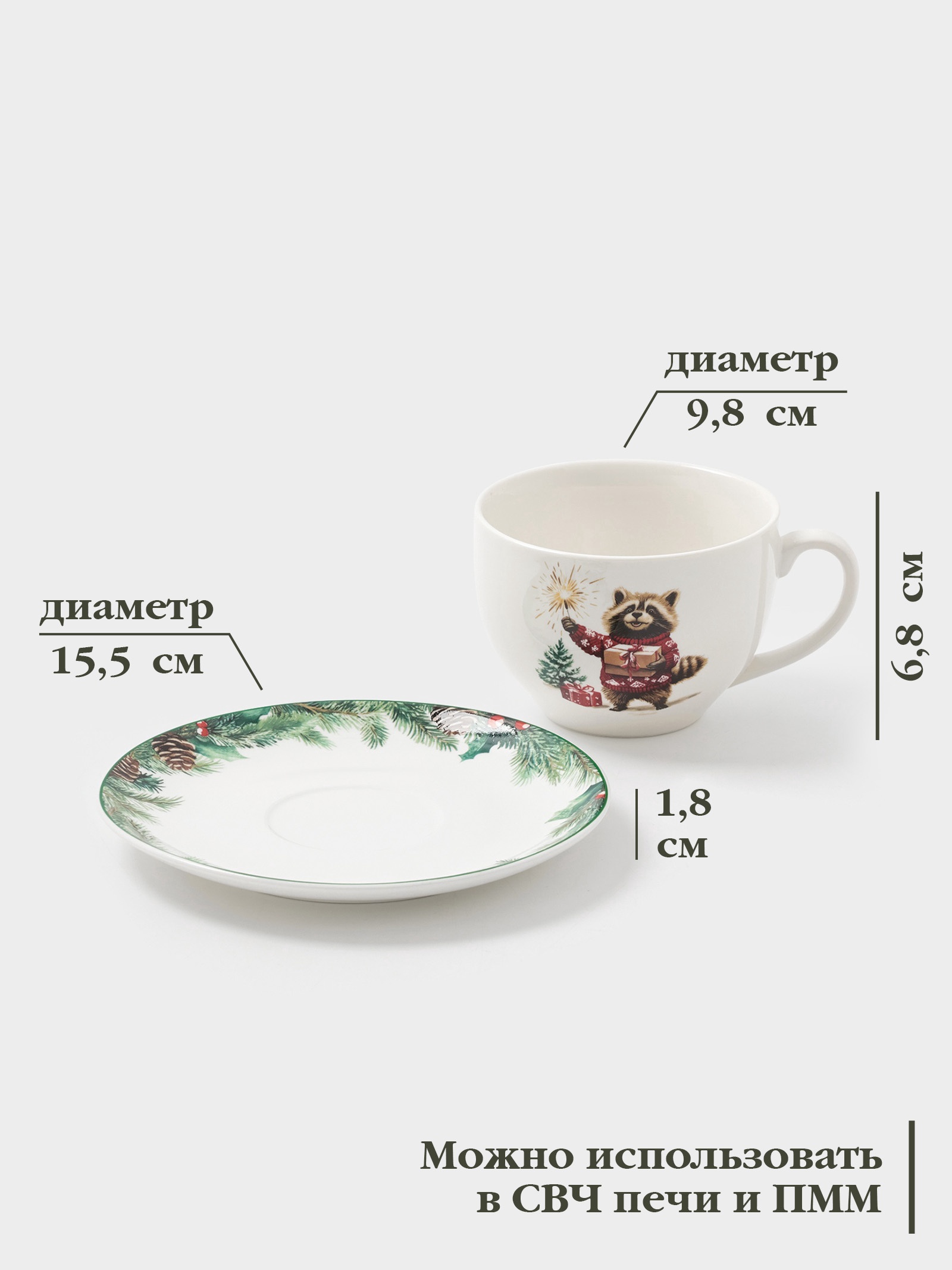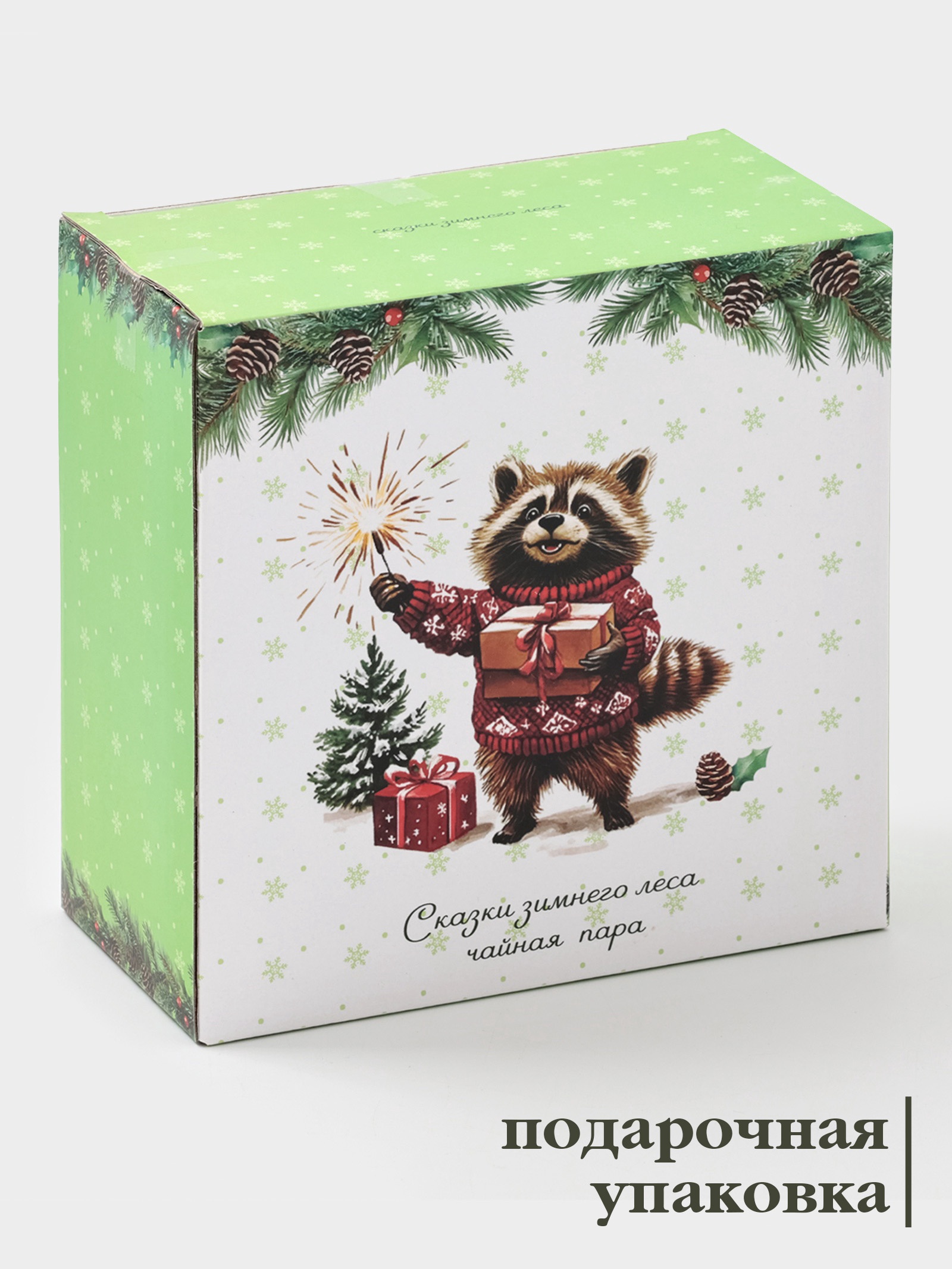 Чайная пара новогодняя доляна «сказки зимнего леса», 2 предмета: чашка 210 мл, блюдце D=15.5 см, фарфор, белая